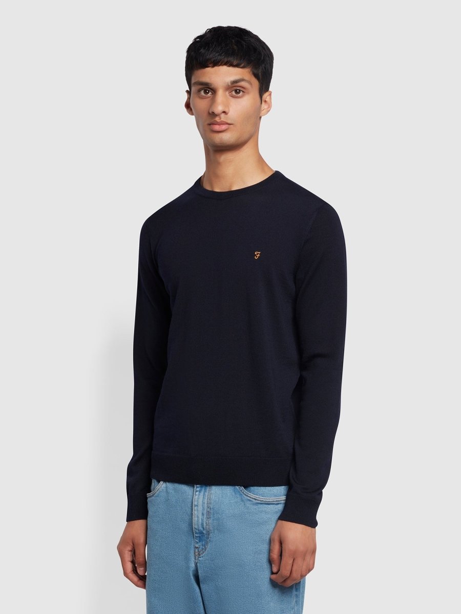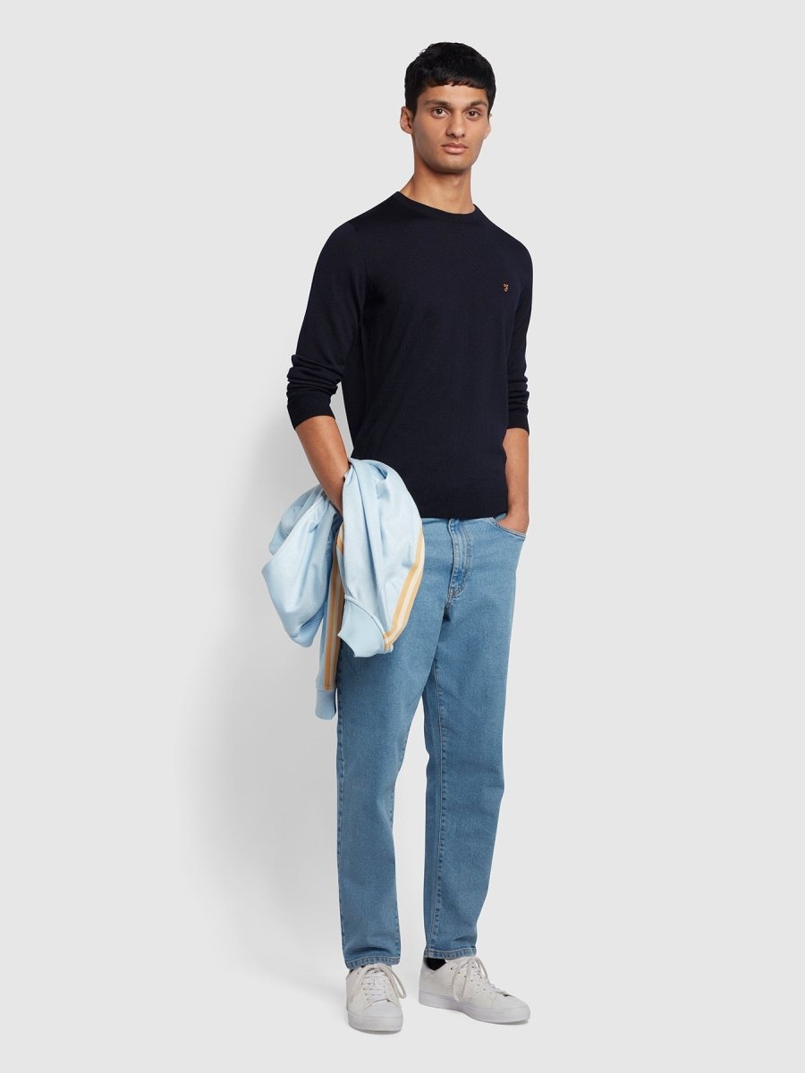 Mullen Merino Wool Crew Neck Sweater In True Navy
