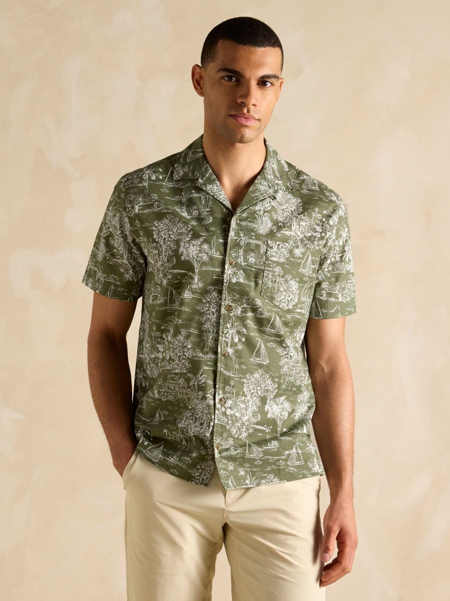 Cotton Slub Khaki Green Short Sleeve Shirt