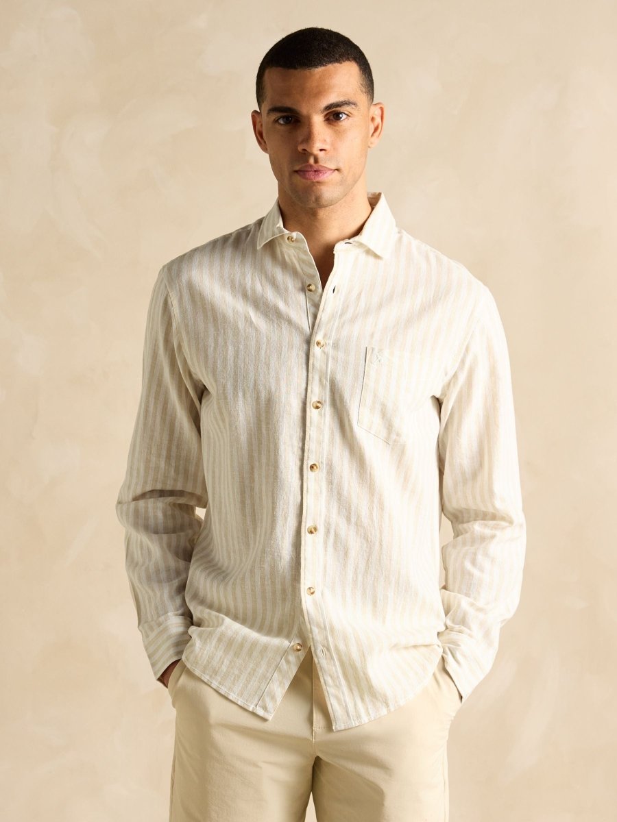 Linen Blend Cream/White Stripe Long Sleeve Shirt
