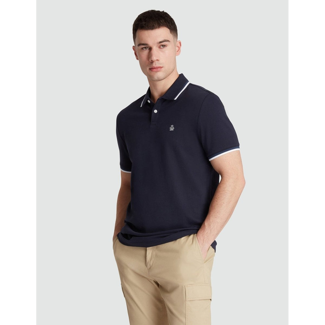Pique Sticker Pete Tipped Polo Shirt In Dark Sapphire