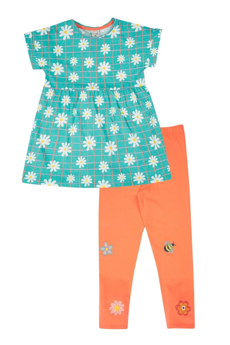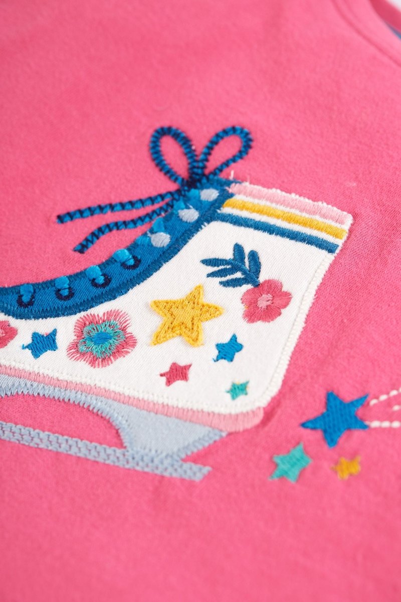 Printed interlock dress with applique detail. Popper fastening at back neck for easy dressing. GOTS...