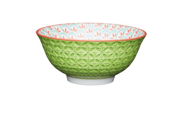 KitchenCraft Bright Green Geometric Print Ceramic Bowl, 16cm