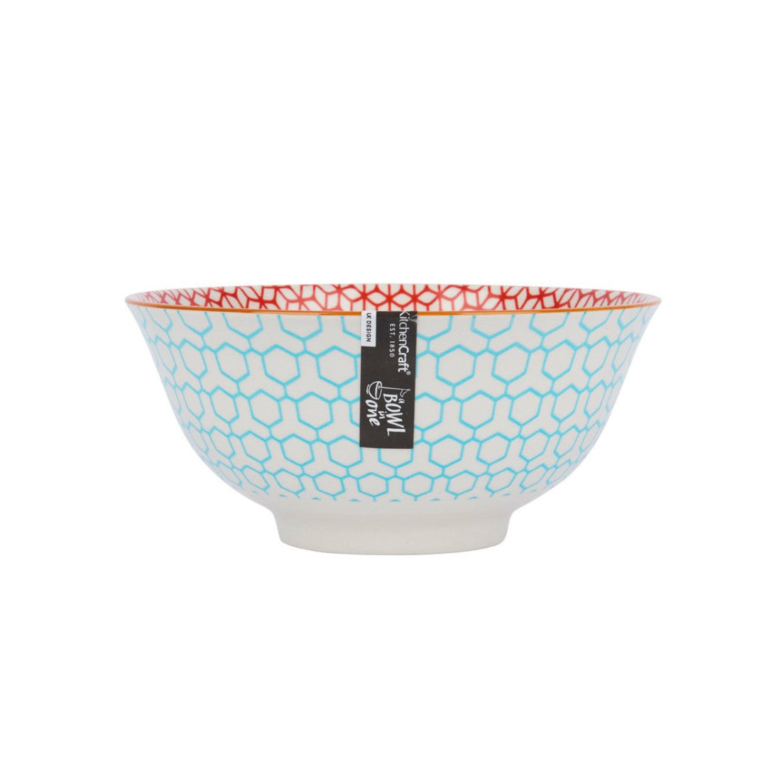 KitchenCraft Geometric Blue Ceramic Bowl, 16cm