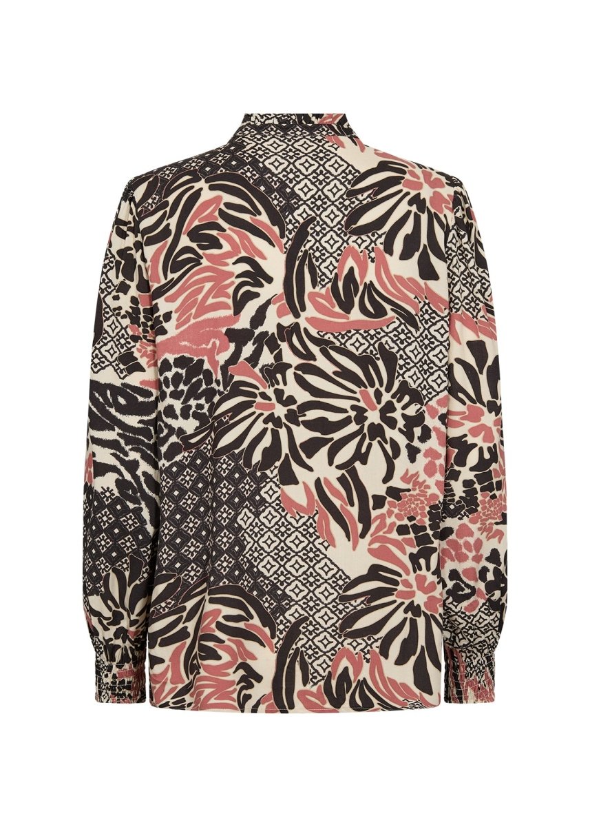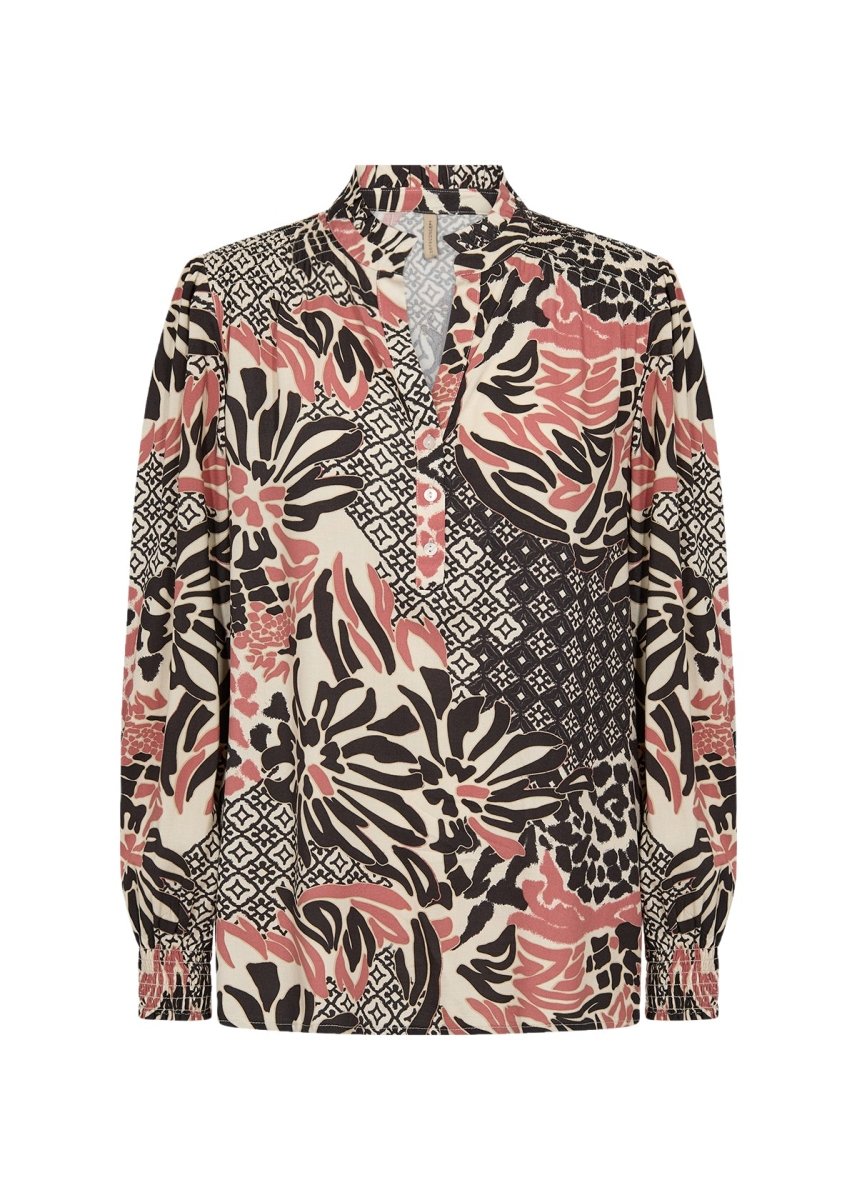 SC-OLETTE 1 is a stylish blouse designed with comfort in mind, made from 100% ECOVERO Viscose. It features a small stand up collar, half button placket, and is adorned with a bold floral and geometric print. Pair this blouse with tailored trousers or a pencil skirt for a smart day-to-night look.