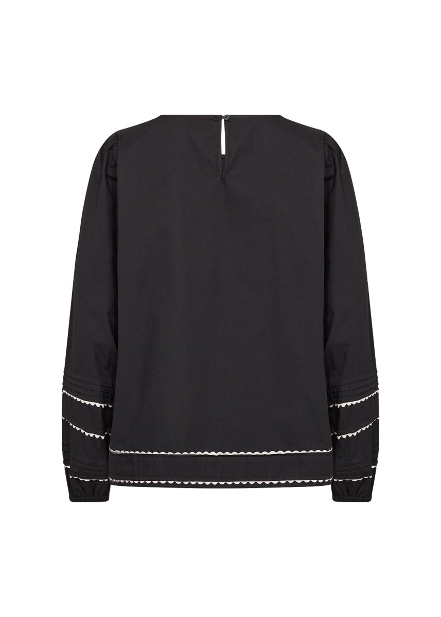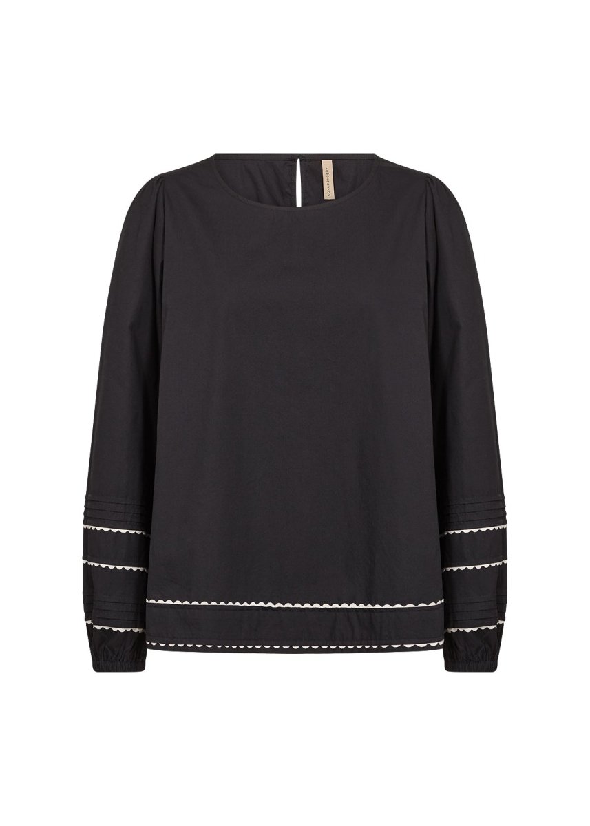 SC-MILLY 8 is a classic Blouse made of 100% Organic cotton. It features a round neckline and has pleats and white contrast details across the hem and sleeves. It closes with a button at the back. Pais well with any bottoms. Try the matching skirt, for a stylish set.