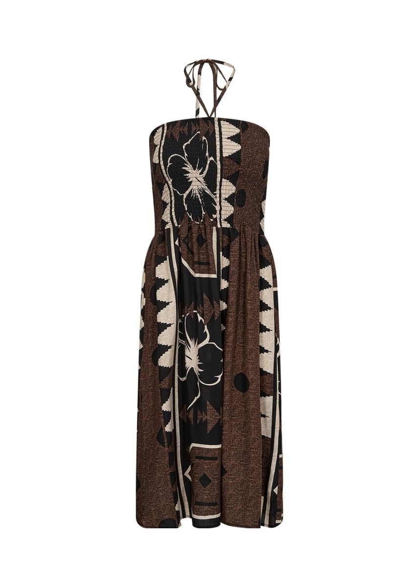 SC-ROSALIE 2 is a striking Dress crafted from 100% LENZING™ ECOVERO™ Viscose. This dress features a halter neckline with a tie closure, an asymmetrical hem, and is adorned with a bold, floral and geometric print. Pairing the dress with simple accessories will complement its eye-catching design for a variety of occasions.