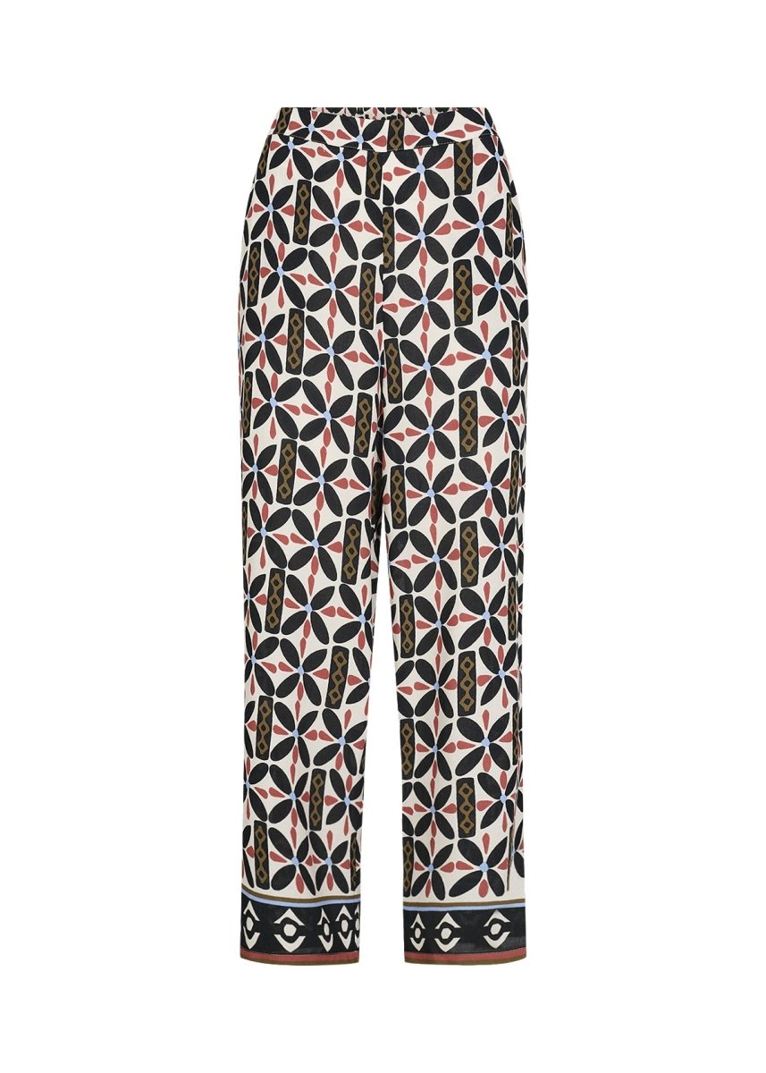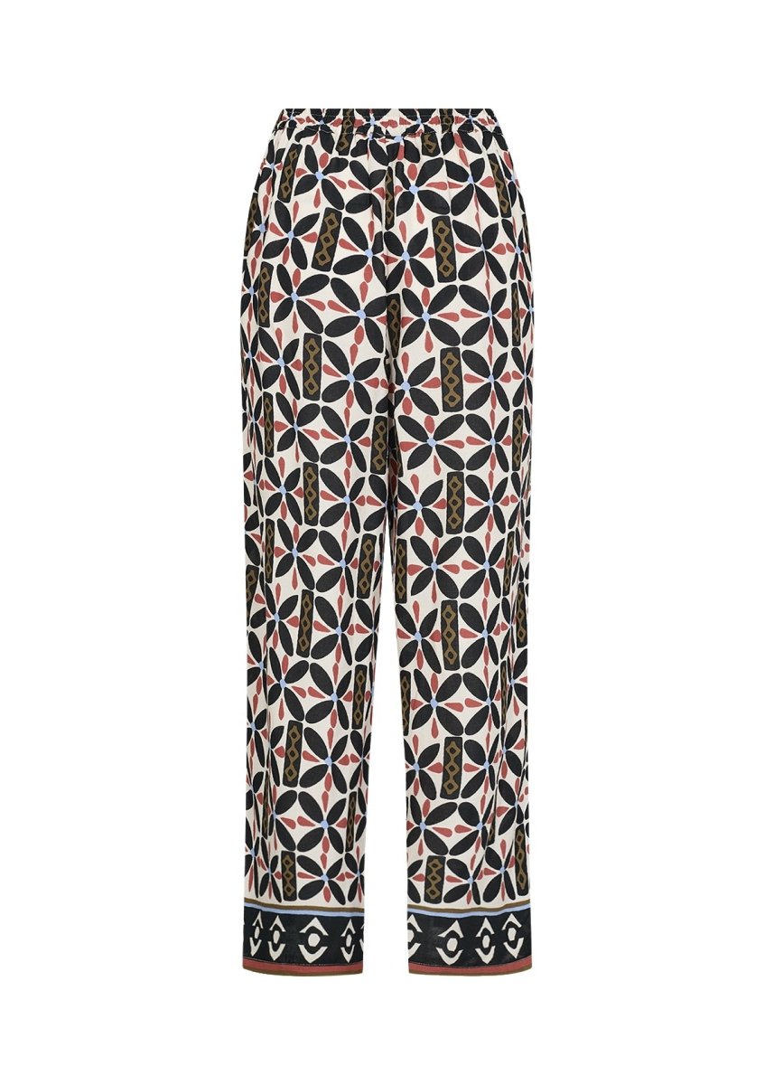 SC-SANDRA 2-C pants are crafted from 100% LENZING™ ECOVERO™ Viscose. The design features an elastic waistband, straight legs, and a striking geometric print with contrasting trim at the cuffs. Pair them with a plain top and sandals for a casual look or dress them up with a button-down shirt and heels.