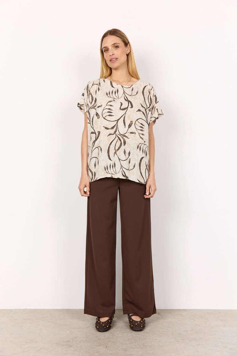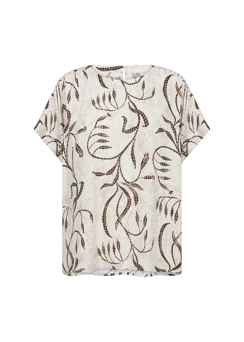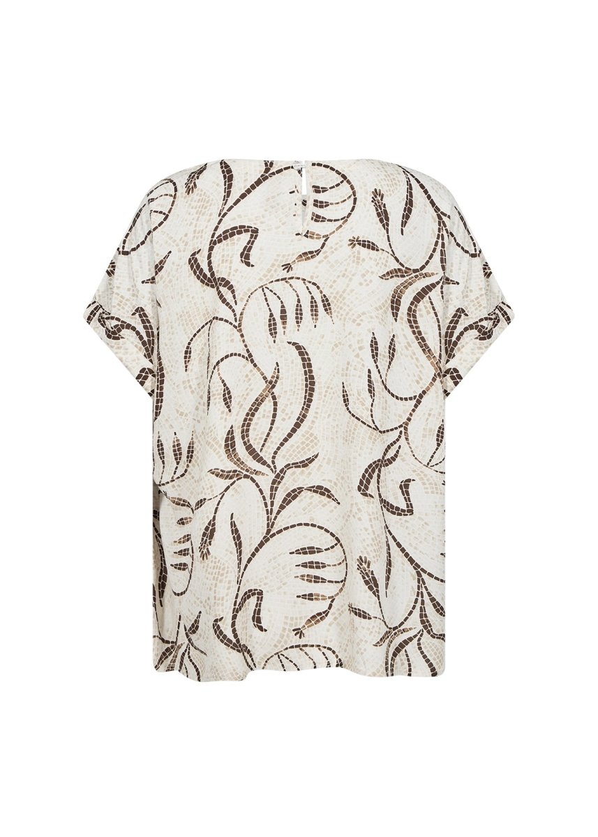 SC-SABIRA 1 Blouse is crafted from 100% LENZING™ ECOVERO™ Viscose. It features a round neckline, short sleeves, and an intricate mosaic print. Pair it with tailored trousers or a skirt for a balanced look.
