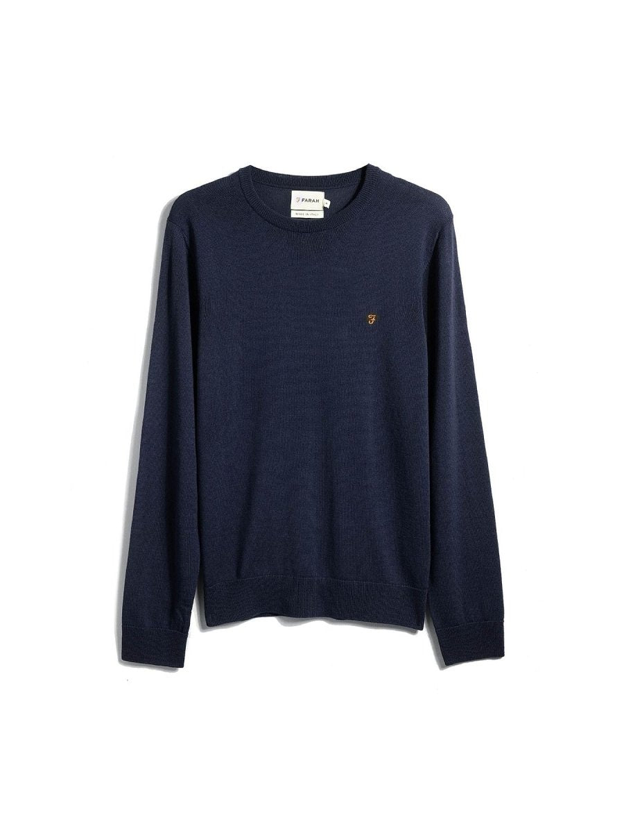 Mullen Merino Wool Crew Neck Sweater In True Navy