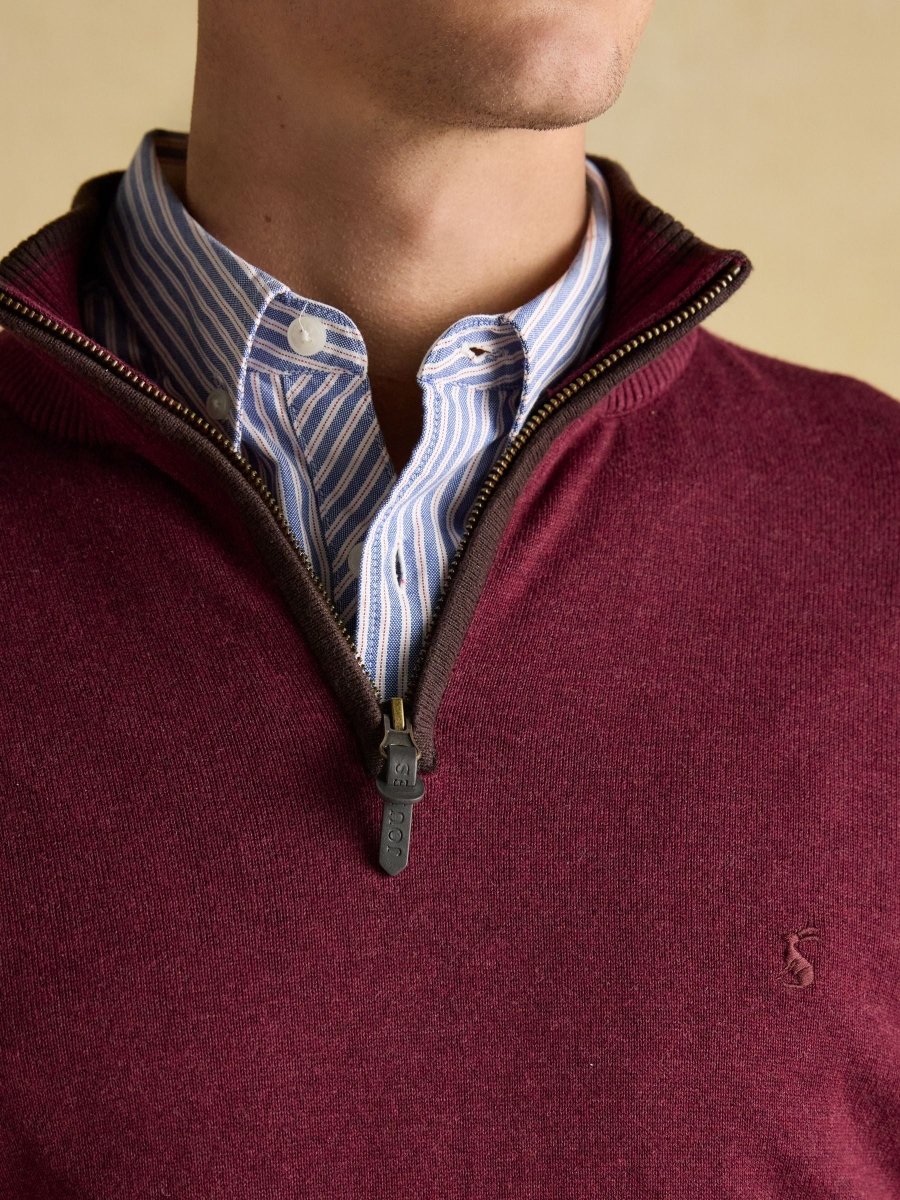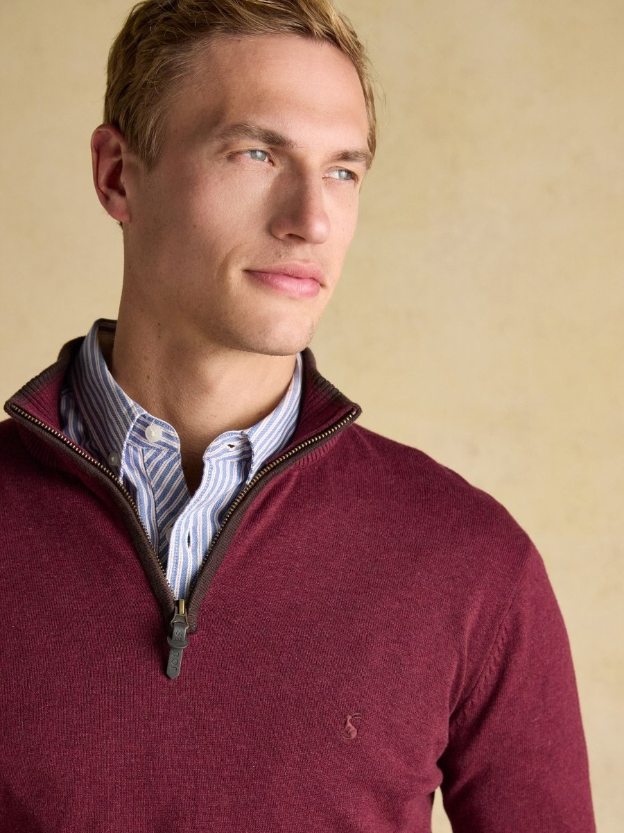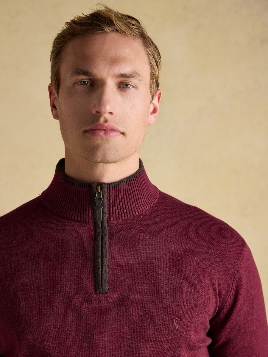 Hillside Burgundy Quarter Zip Knitted Jumper