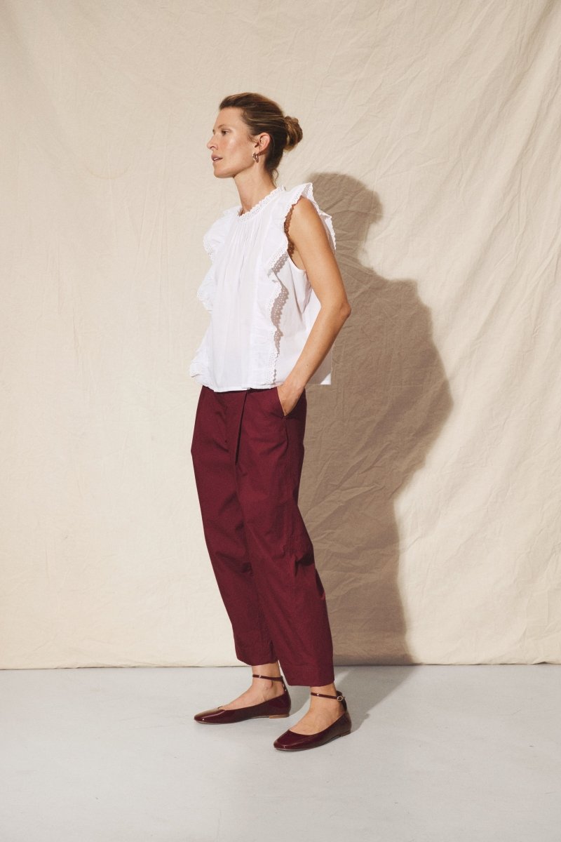 These ankle-length trousers are made from a soft cotton blend with stretch for optimal comfort. Designed with visible seams, side pockets and a straight fit. Style them casually with a T-shirt or dress them up with a shirt.