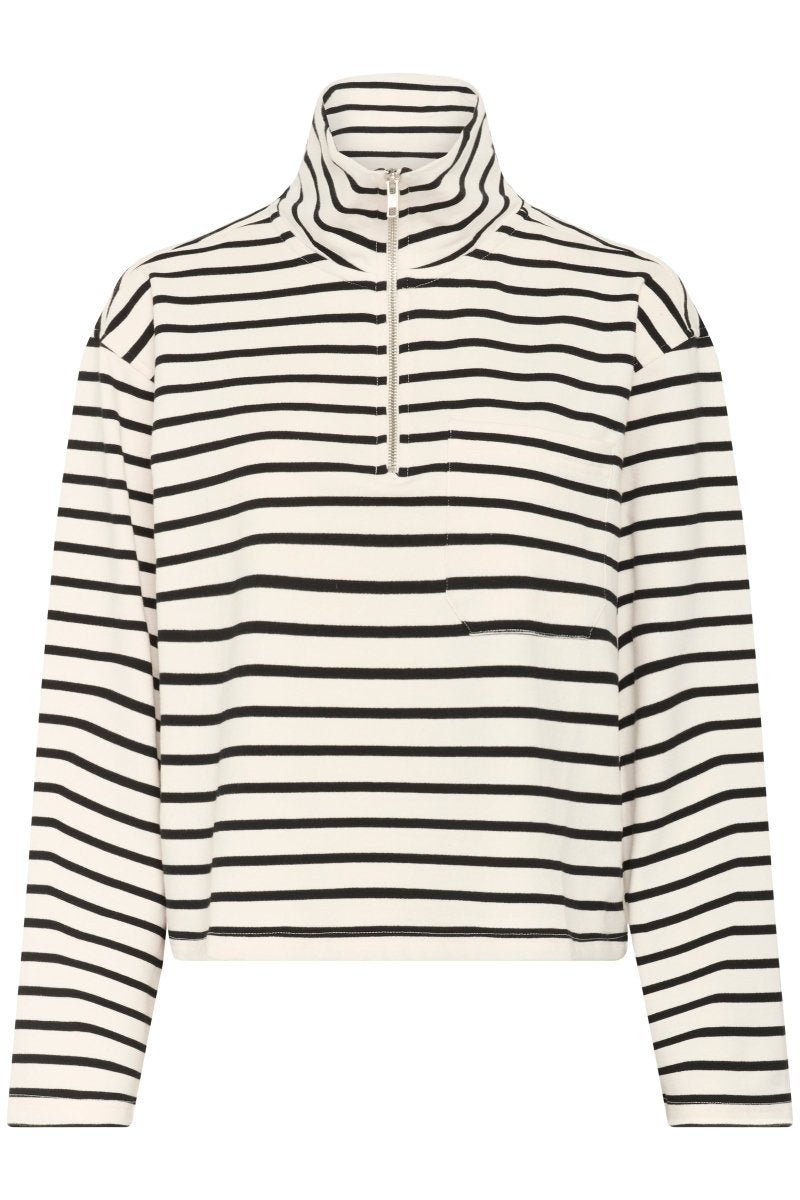 This striped cotton top features a relaxed fit and a high collar with zip detail. The chest pocket adds a casual touch, while the classic nautical-inspired look makes it perfect for everyday wear. Style it with jeans, chinos or layered over a dress for a laid-back outfit.