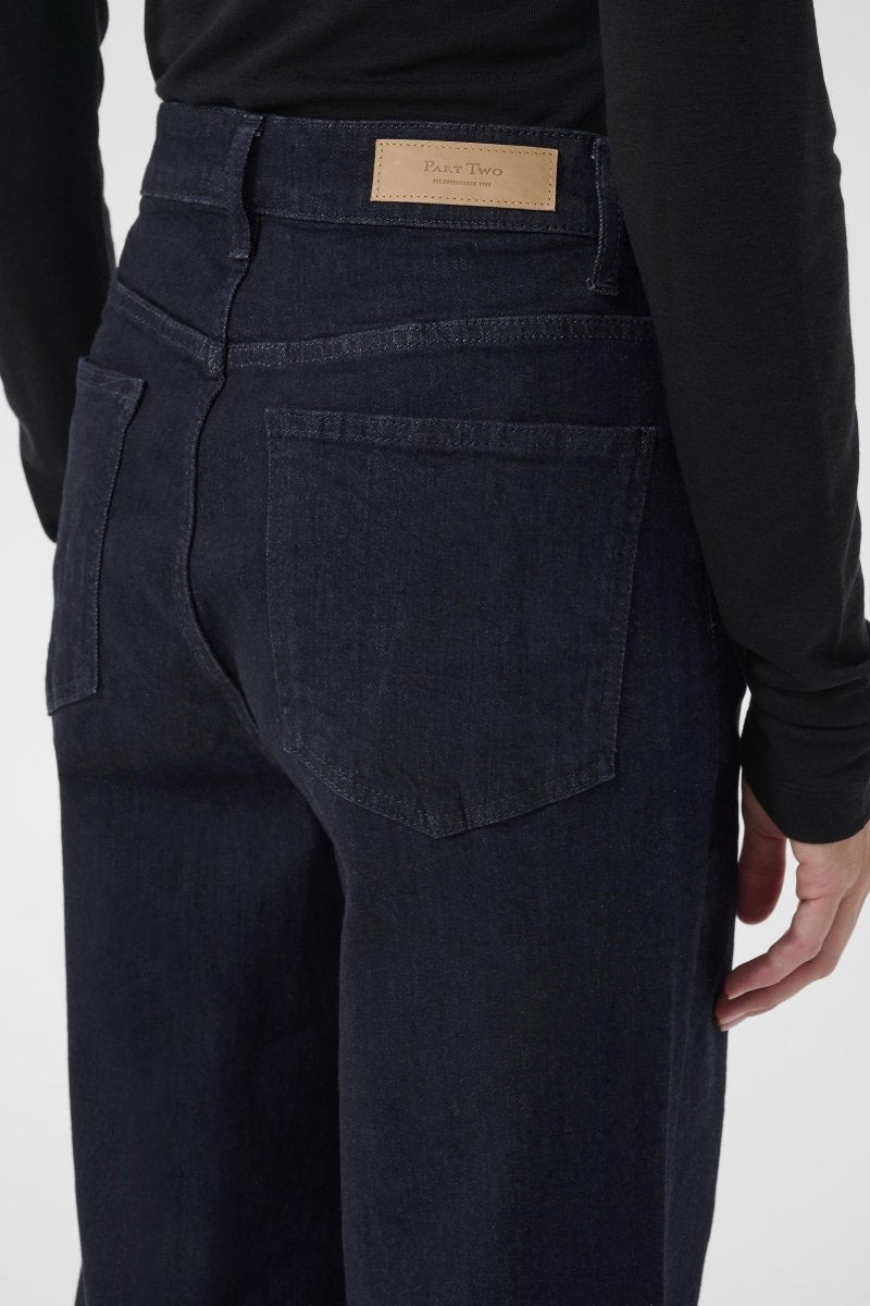 These classic jeans in dark denim feature a straight cut and high waist, offering a flattering and timeless silhouette. Made from a sturdy cotton blend with a hint of stretch, they provide great comfort and movement. Style them with a shirt or knit for an effortless look.