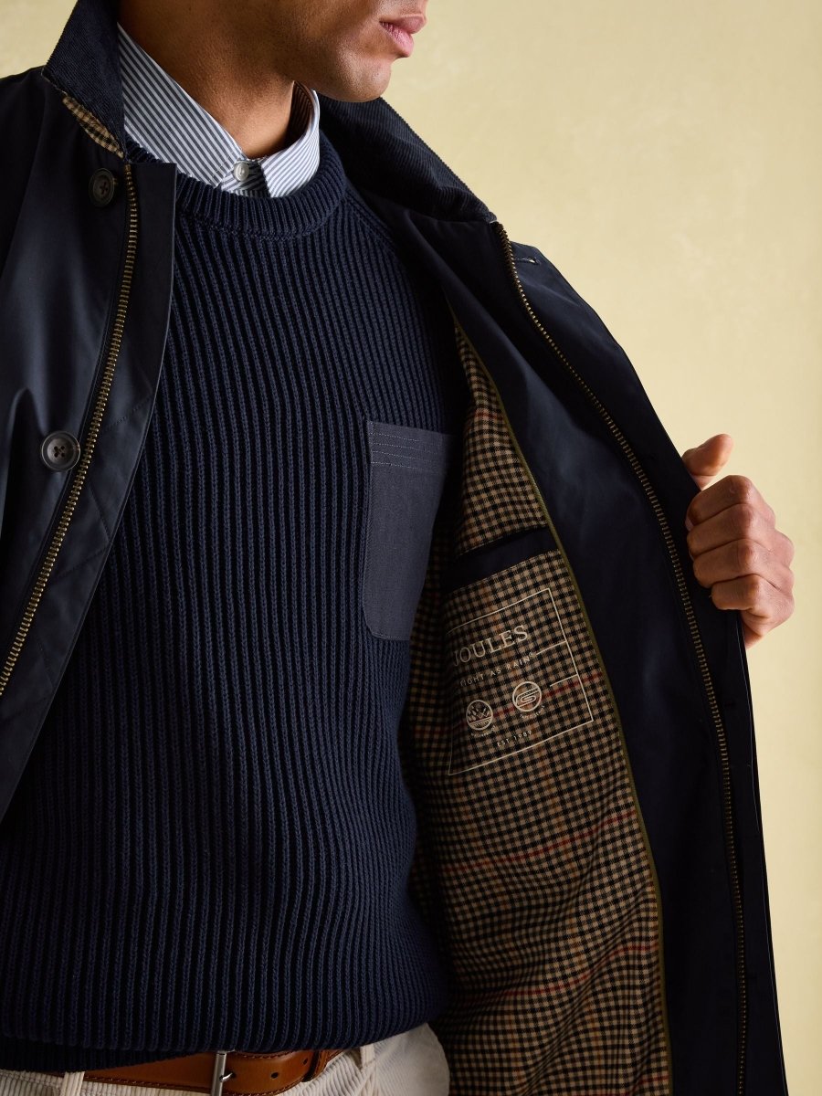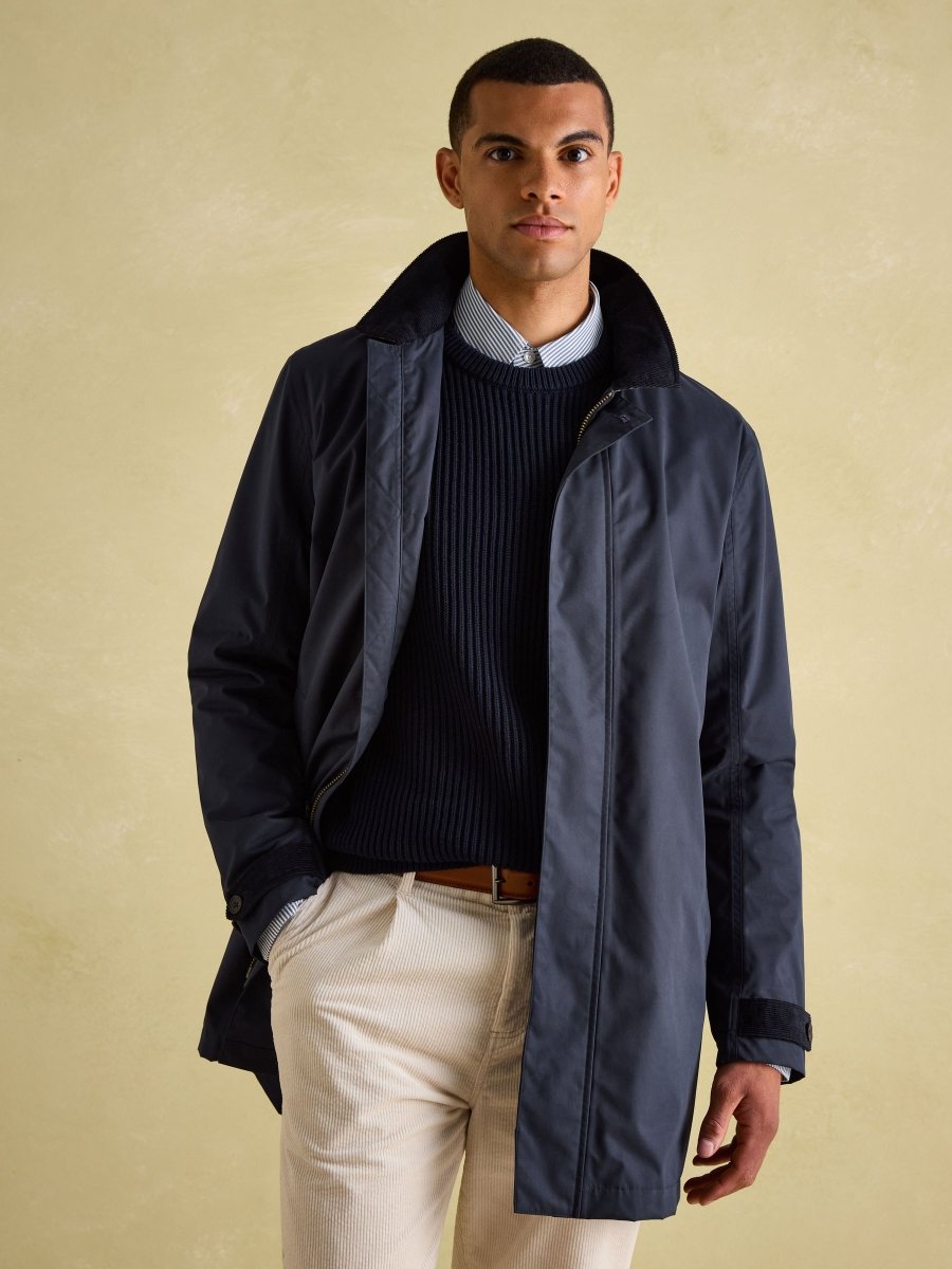 The Sandford in navy is the kind of coat that will keep you dry while allowing you to maintain a smart casual appearance. With a straight fit through the body and a concealed button fastening, it has a clean, unfussy look that will withstand the test of time.
