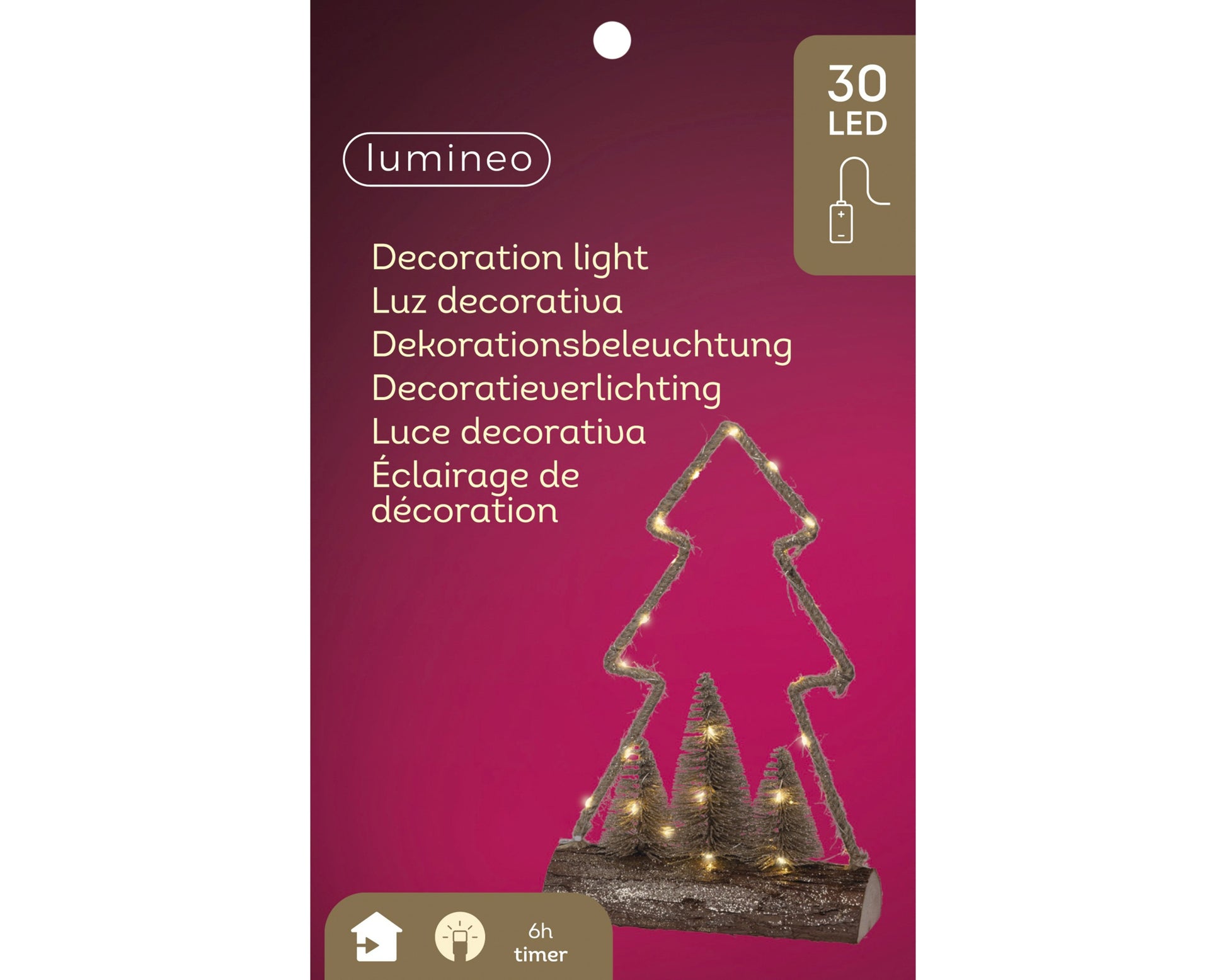 - Equipped with 30 micro LED bulbs emitting a soft warm white light