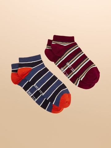 Crafted from a light and airy cotton-rich material, this pack of two trainer socks makes for a comfy, everyday essential. Each pair features a striped design with contrasting heel and toe. They also make a great gift for anyone who is always losing their socks.