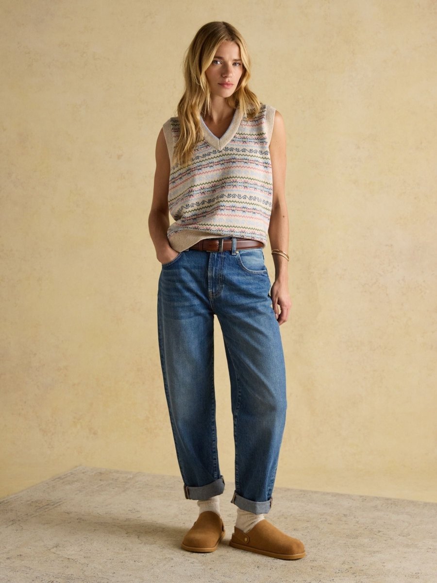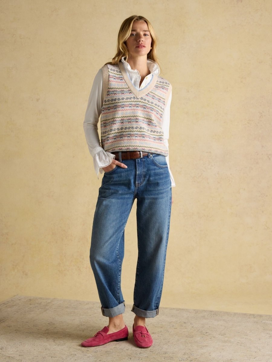 Islay Cream V Neck Fairisle Cotton Rich Vest