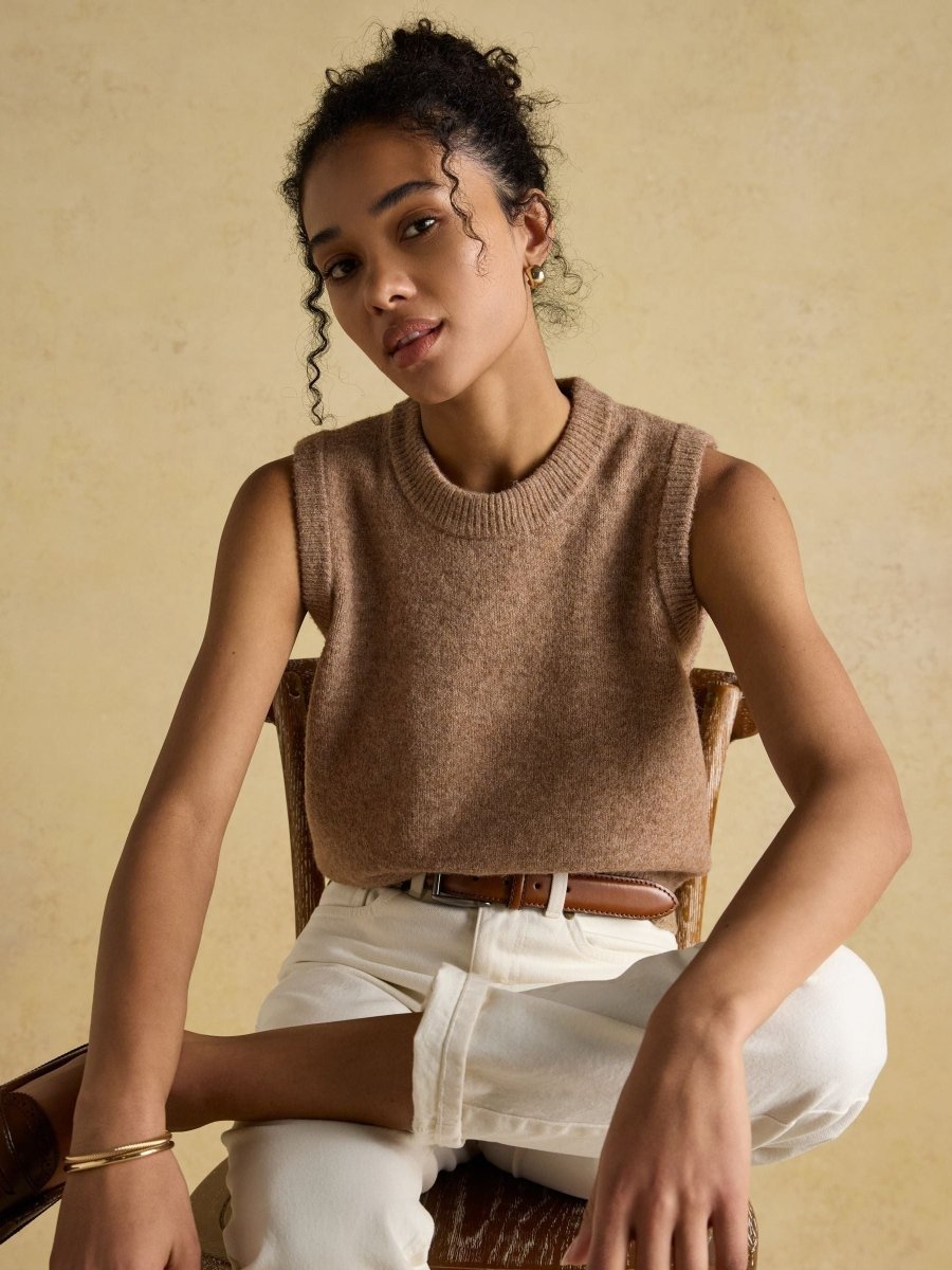A knit you can wear now and later, the Holly vest is a versatile style to own. In milder weather style alone with chino or denim shorts and when temperatures drop, layer over a ruffle neck blouse or slim-fit top. It comes in an array of colours to choose from and is finished with a ribbed neck, hem and armholes.