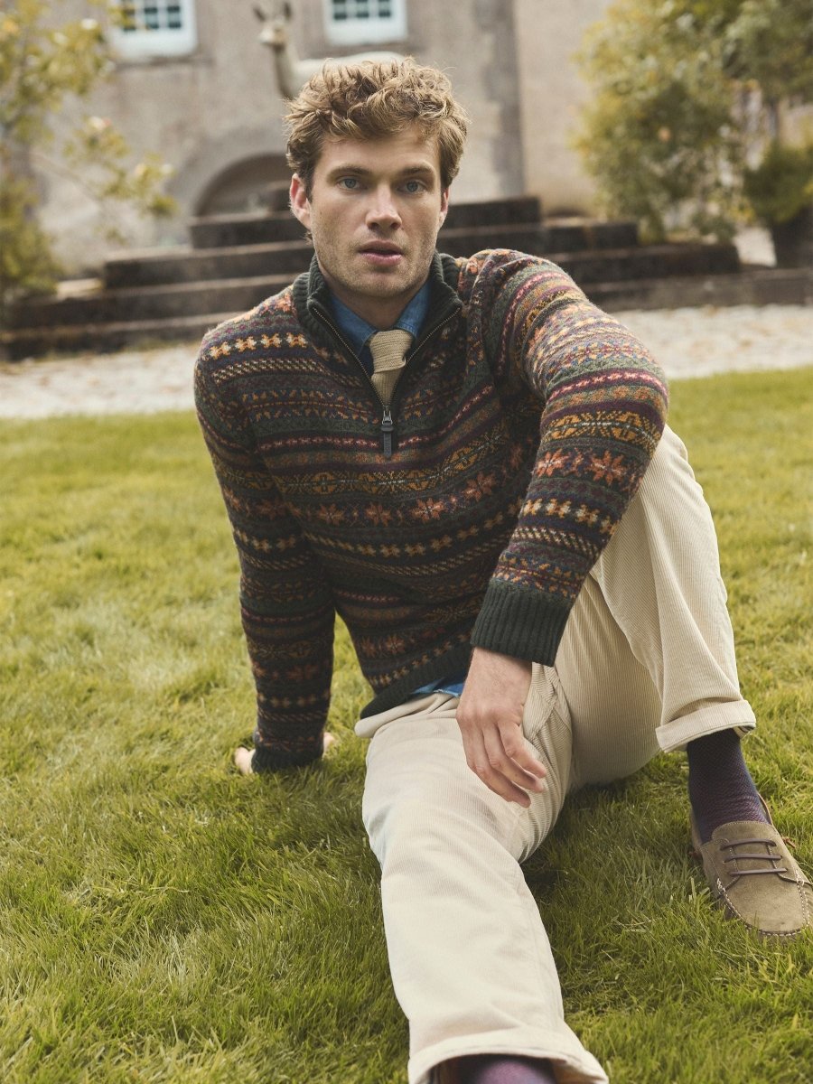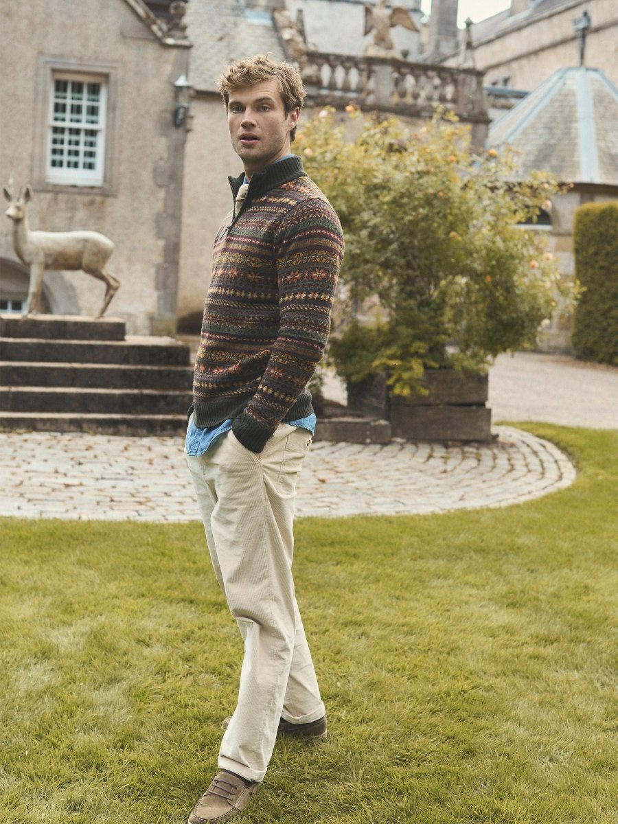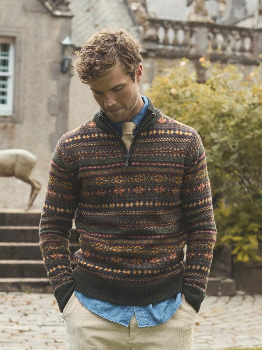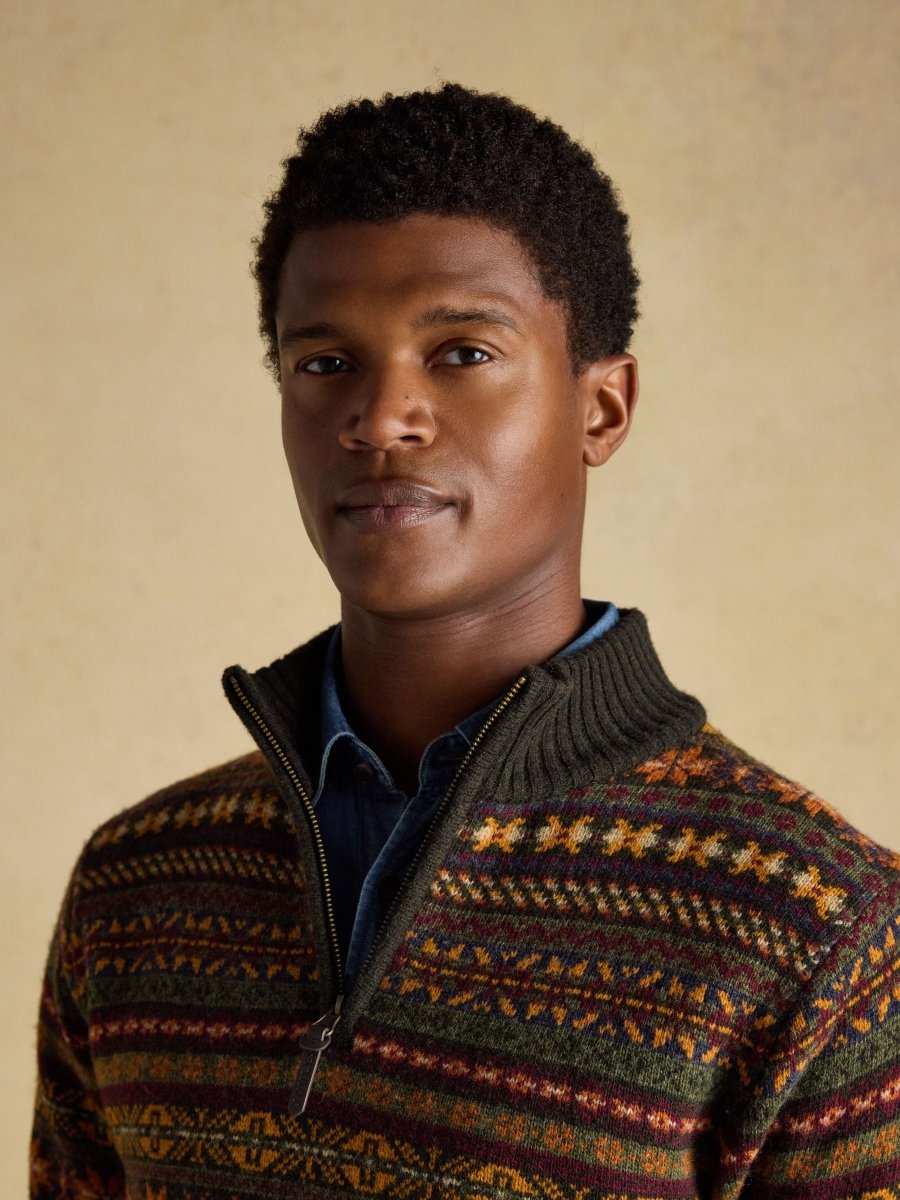 The Milligan will work to instantly elevate your seasonal style. Refined and dapper, it's crafted from a wool-rich blend so you know its hardwearing and will stand the test of time. The overall design showcases a detailed Fairisle pattern and it has a warming funnel neck with a quarter zip, so it's easy to adjust for your comfort. It's finished with ribbed trims and will pair perfectly with jeans or trousers.