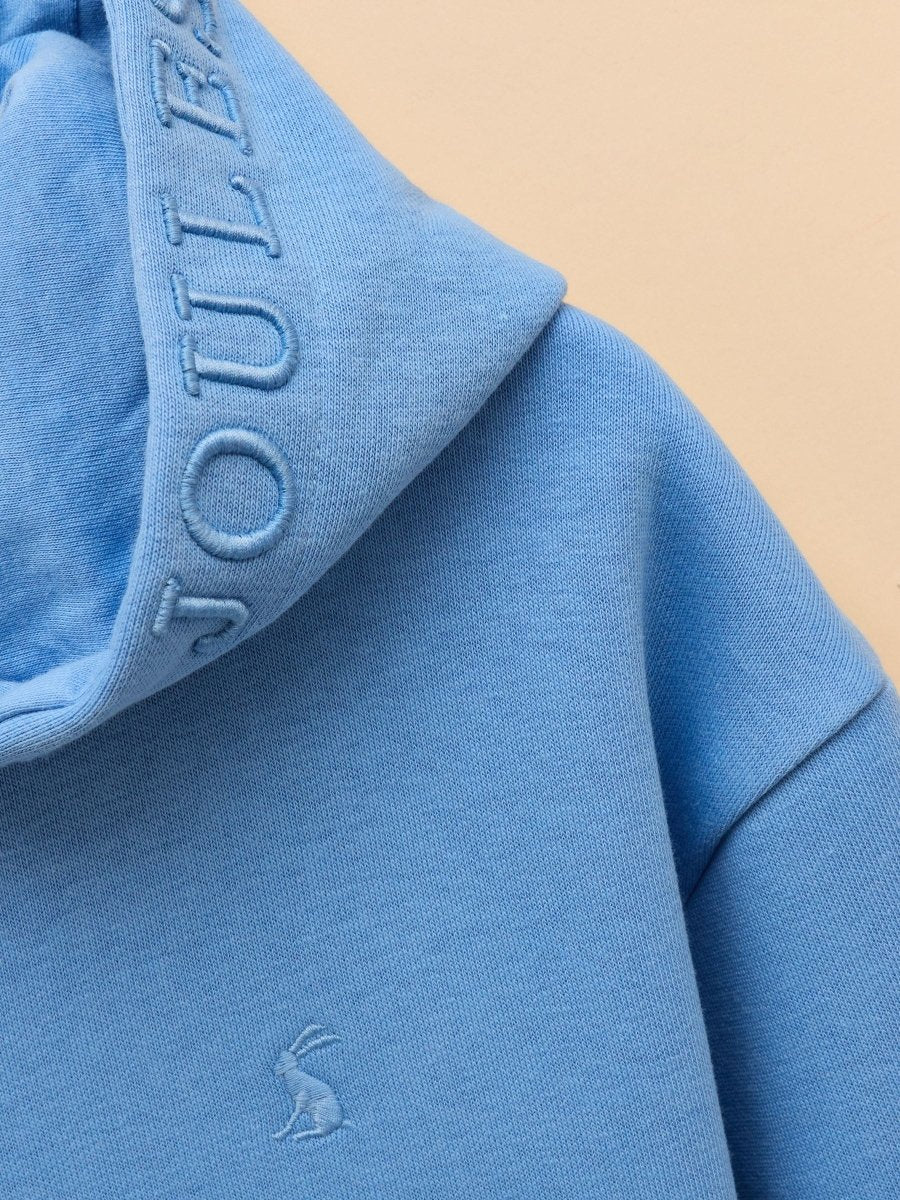 This relaxed fit jersey hoodie is sure to become one of their favourites when the weather calls for an extra layer. Lined with ultra-soft brushed-back fleece, it's perfect for throwing on when their friends ask them out to play, and has a cosy kangaroo pocket to the front with contrasting bartack stitching. The hood has a jersey lining and fixed drawcord details. Finished with Joules branding to the chest as a mark of its quality.