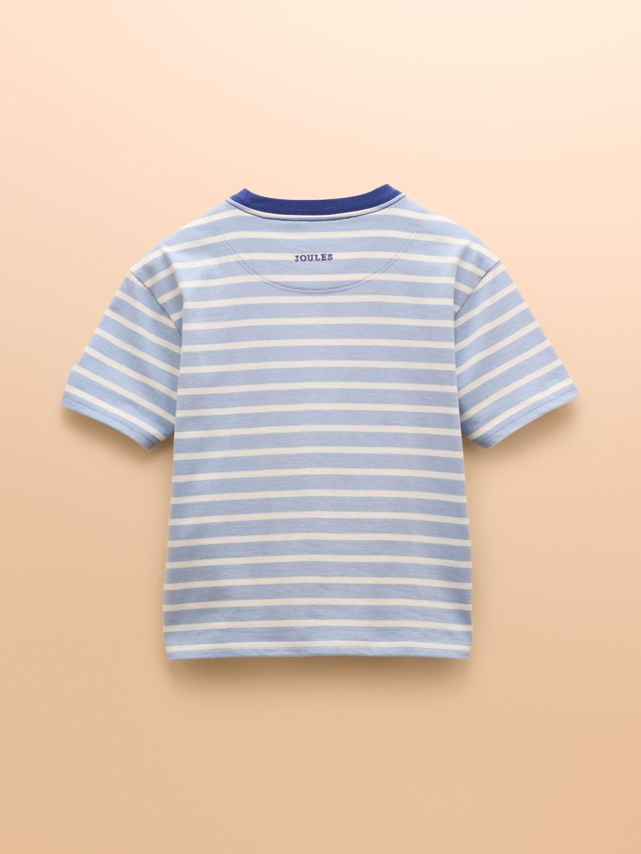 Archie Blue/White Cotton Short Sleeve Applique T-Shirt