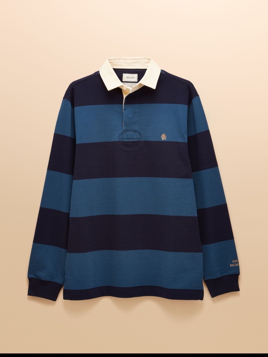 An iconic style that has lived long in men's wardrobes, the Onside rugby shirt carries a preppy yet sporty look. It features the hallmarks of a traditional rugby shirt including a heavyweight cotton jersey construction, a concealed placket with rubber buttons, a pointed twill collar with undercollar stitching and wide and thin contrasting horizontal stripes. Crafted with premium fabric, it's a hardwearing style that will be part of your off-the-field attire for a long time. It's finished with Joules Rugby Club embroidery to the chest, side splits, ribbed cuffs and reinforced top stitching to the placket. Pick it up in an assembly of colours.