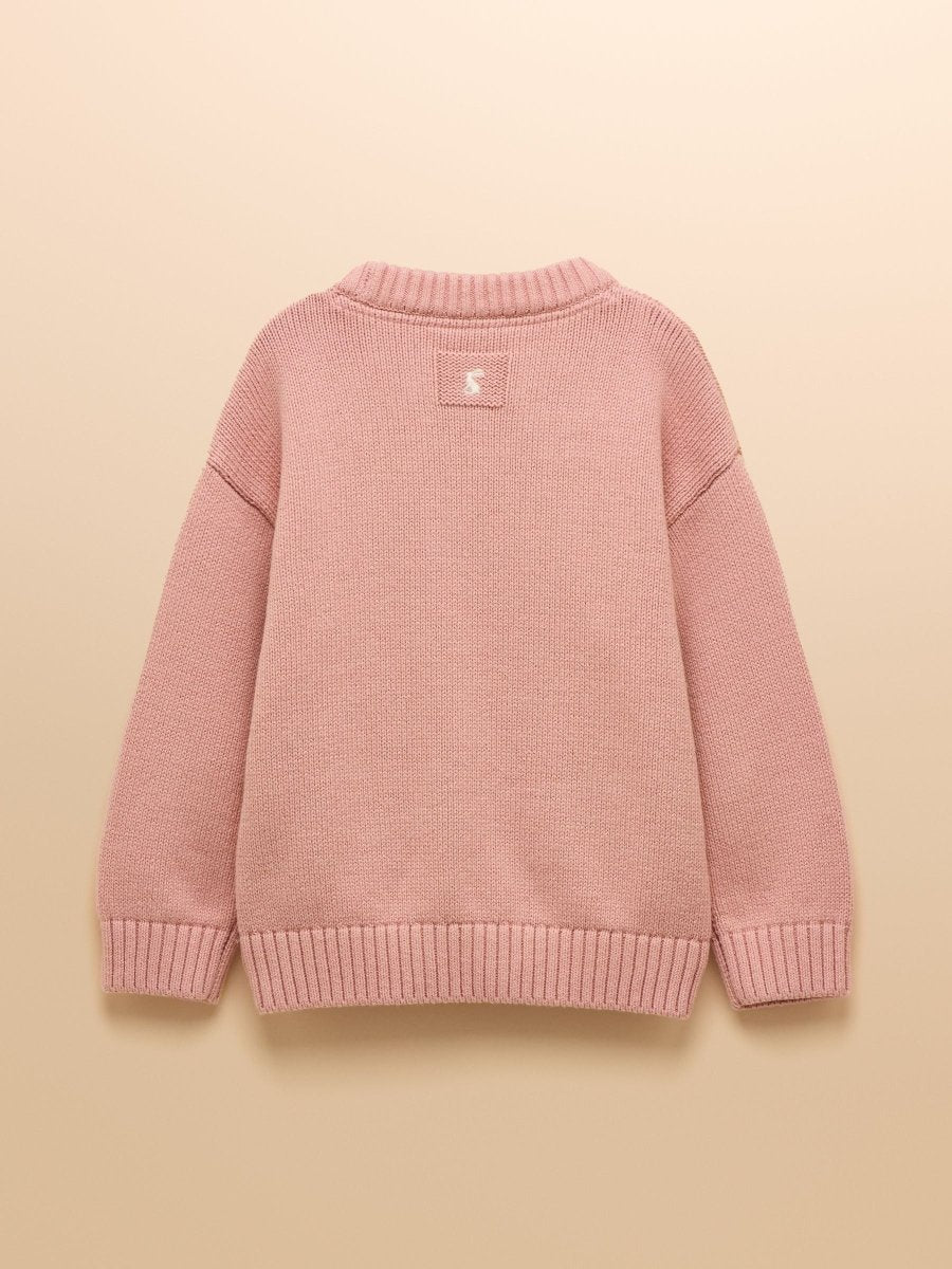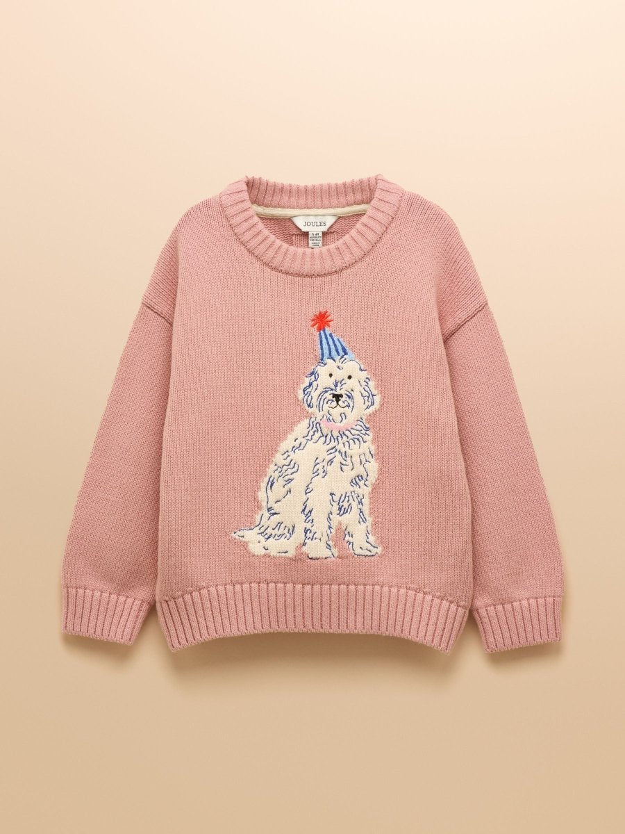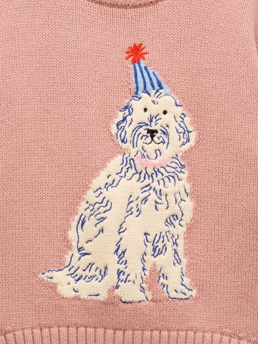 Girls' Intarsia Pink Party Dog Knitted Jumper