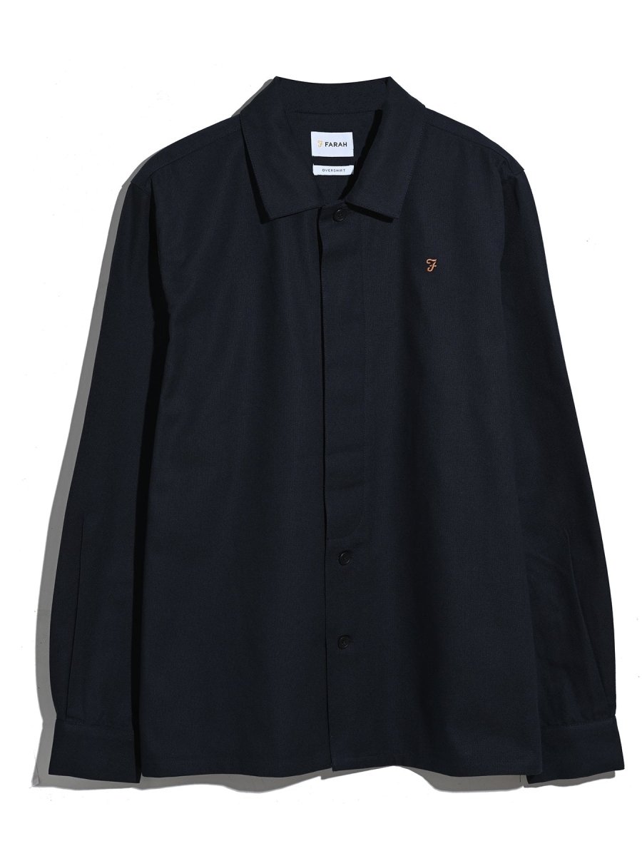 This exceptionally versatile piece effortlessly bridges the gap between a standalone shirt and a lightweight jacket, making it a true workhorse for any season. With a sharp classic point collar and full button-front closure, it offers endless styling possibilities. A subtle yet distinctive Farah 'F' embroidered logo sits discreetly on the chest, a quiet hallmark of quality, and it's complete with well-proportioned long sleeves and a neat, straight hem, making it your ultimate go-to for sophisticated, layered outfits.