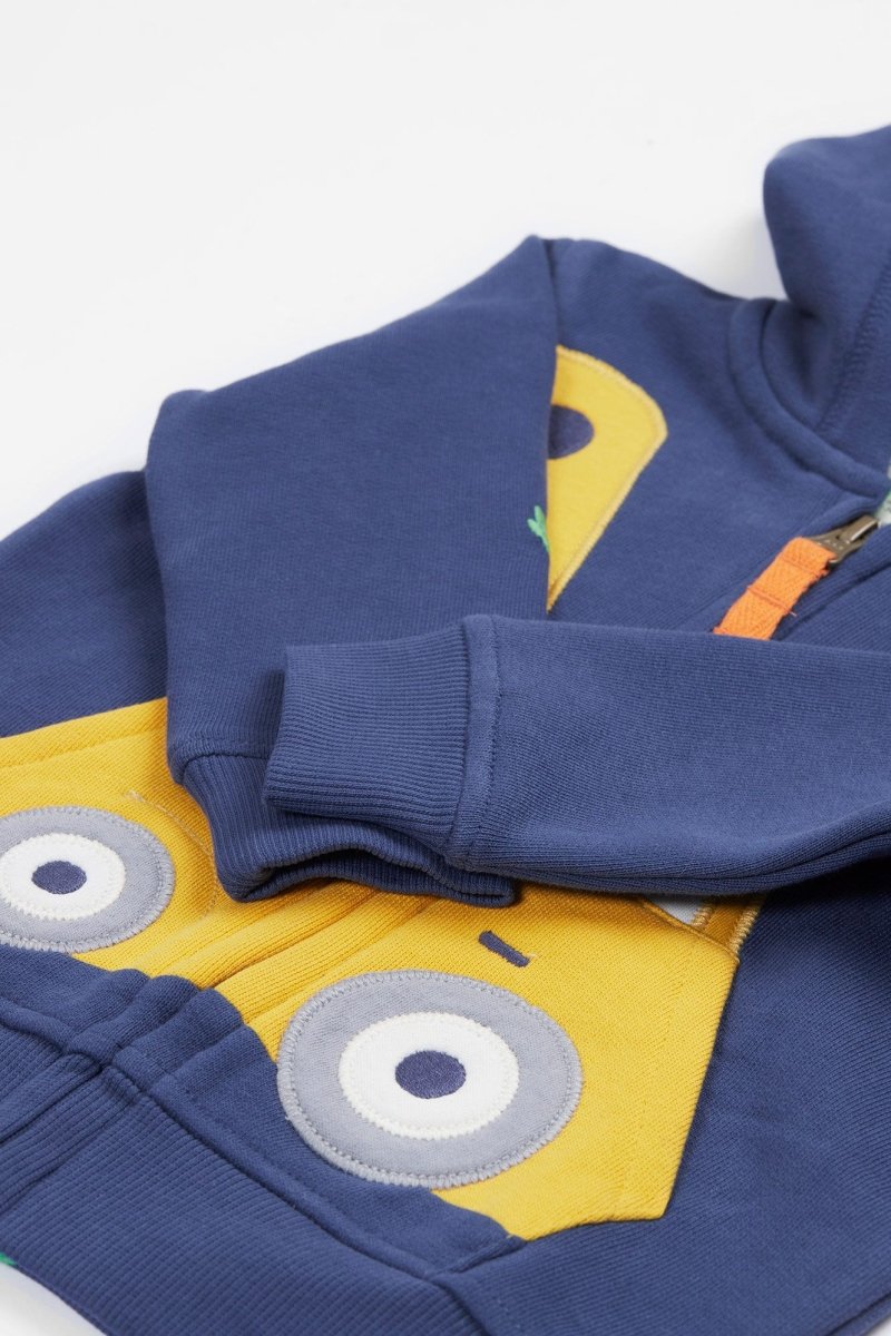 Chilly day? Just pop on and zip up our Carbis Hoodie and keep their adventures going! We've crafted it from soft and snuggly GOTS certified organic cotton, making it playtime ready. Featuring fun and colourful appliqués on the front, this zip hoodie is a fab extra layer with its snuggly lining in the hood and stretchy rib cuffs and hem helping to lock in the warmth.