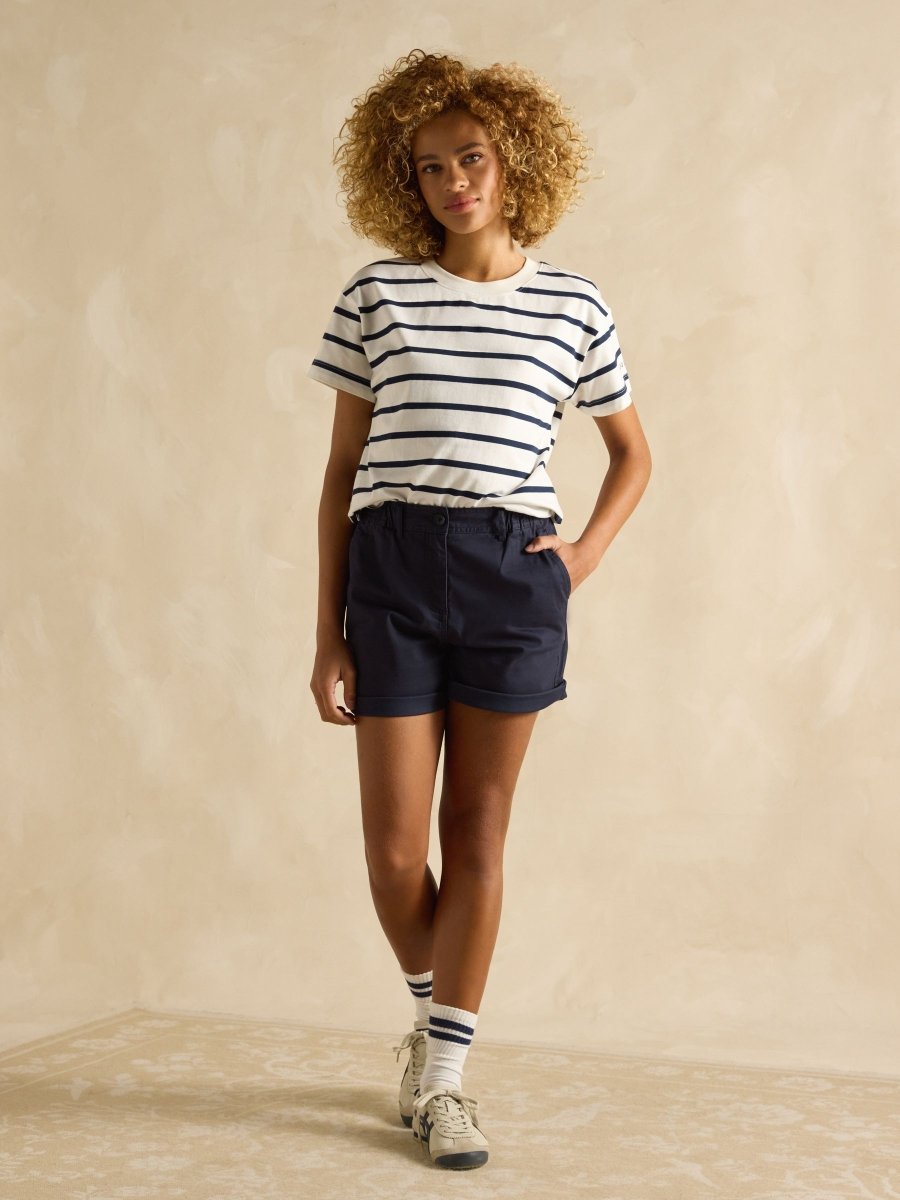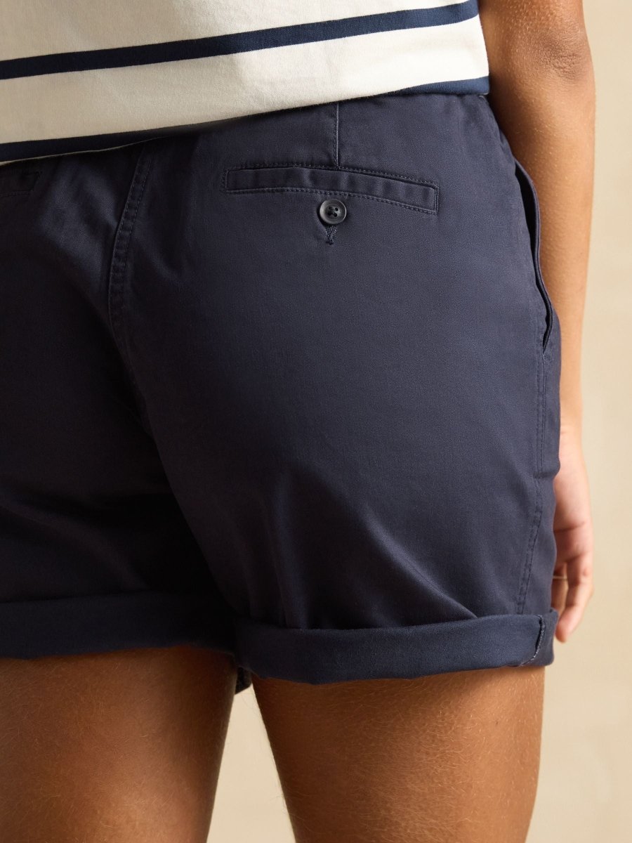 Our chino shorts are a style that should hold space in every spring and summer wardrobe. They've been a favourite for many seasons and for many reasons. They sit mid-thigh for a flattering fit and have a mid-rise waist. The cotton blend fabric has a brushed fabric finish which makes them soft to touch, the colour is perfect for the season and the hems can be rolled up or down as you fancy. They have a full zip and fly fastening, side entry pockets, two welt pockets to the back and belt loops to help you accessorise in style. Brushed fabric finish for a soft hand-feel. Mid-thigh length. Mid-rise waist. Belt loops. Zip and fly fastening. Side pockets. Rear welt pockets with button detail.