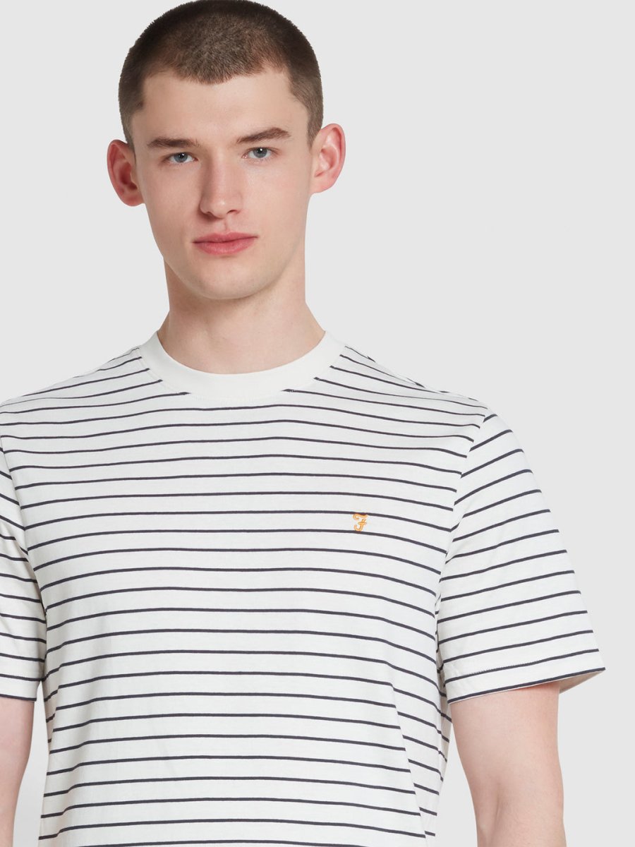 Expertly crafted from premium organic cotton jersey, this Oakland Bretton Stripe T-Shirt is a must-have for any wardrobe. Featuring a classic Breton stripe design and an embroidered gold F logo, this t-shirt combines timeless style with sustainable fabric.