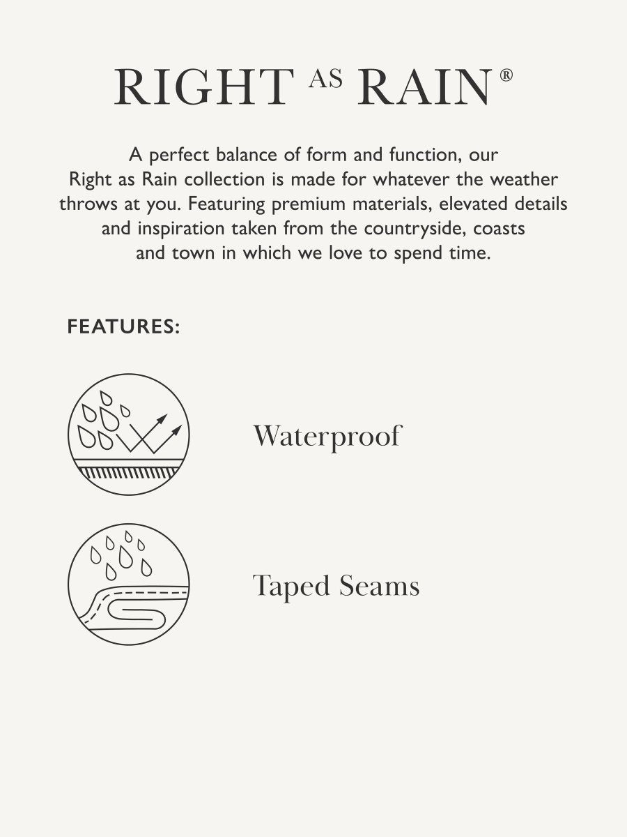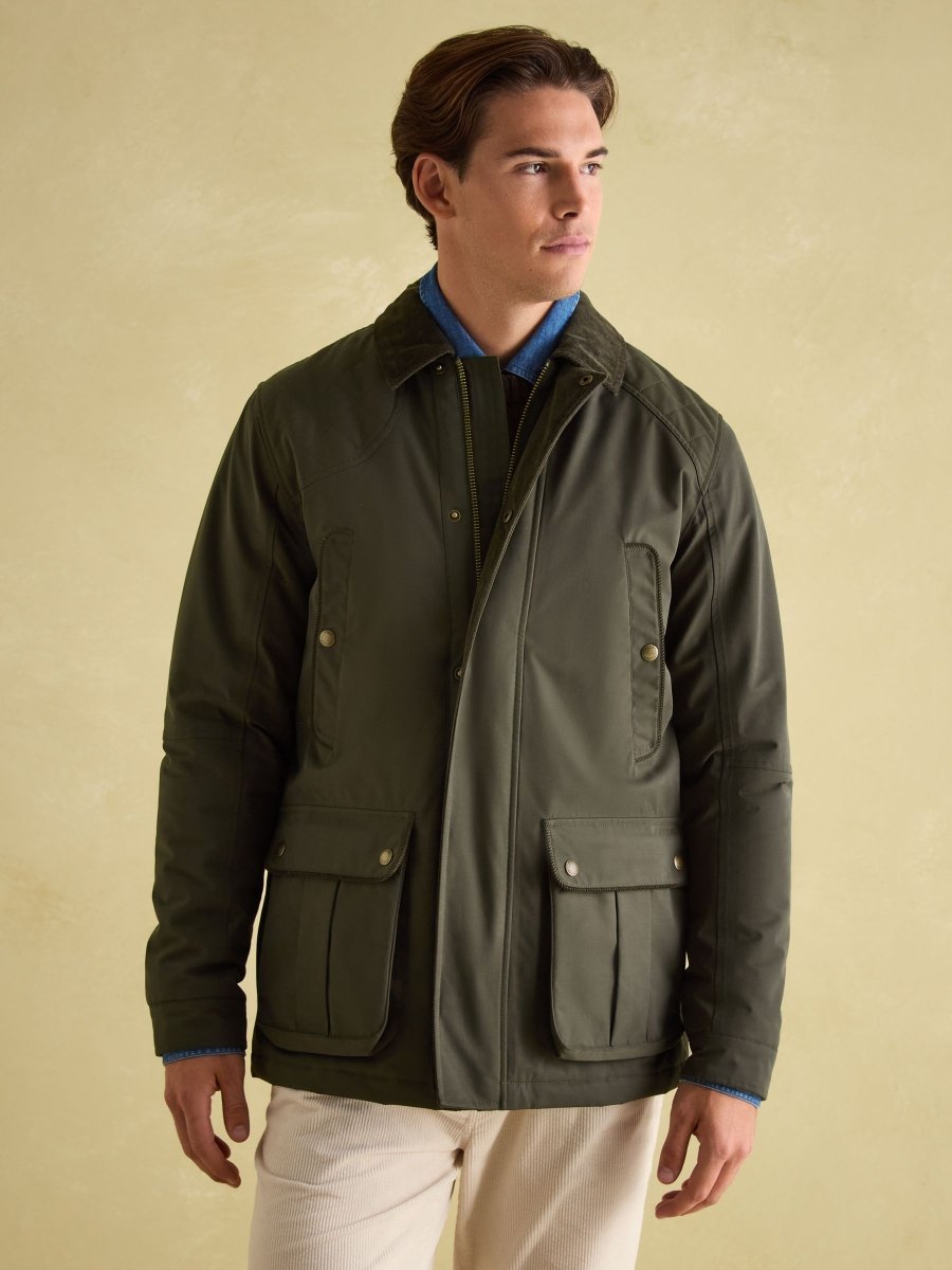 Call off the search for the ultimate men's country coat, the Farleigh is truly in a field of its own when it comes to function and style. It has a waterproof outer complete with taped seams for full protection from the rain, and a quilted checked lining which offers warmth - essential for spending the day outdoors. Inspired by outdoor pursuits, it features all the classic details you might expect including a corduroy collar, quilted detailing including a gun patch to the right shoulder (as worn) and hand warmer pockets, as well as dual entry bellow pockets. It fastens via a concealed zip and popper fastening and is finished with adjustable cuffs. Cotton blend. Waterproof with fully taped seams. Quilted checked lining for warmth. Quilted gun patch detail to the right shoulder (as worn). Dual entry bellow pockets. Hand-warmer pockets. Concealed zip and popper fastening. Corduroy collar. Adjustable cuffs.