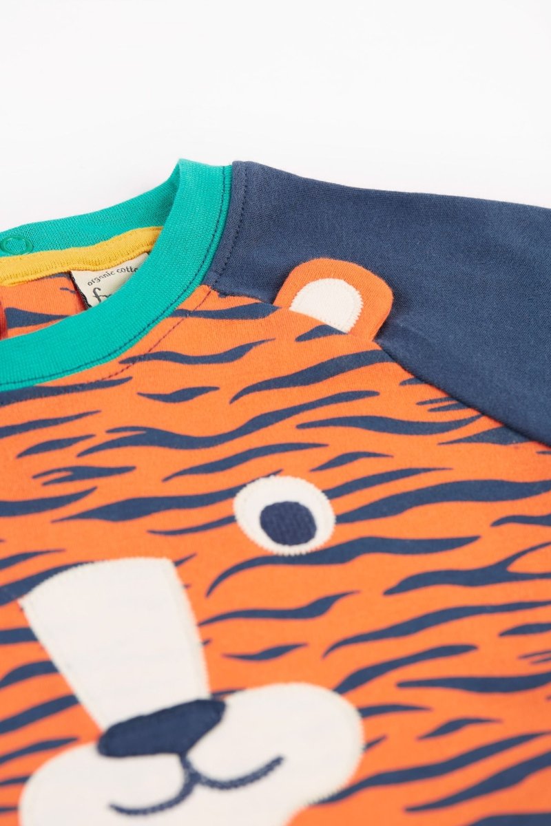 Brighten up your little one's adventures with a splash of Frugi fun in our Happy Raglan Top! Made from super-soft organic cotton interlock, it's free from any nasty chemicals, making it durable, breathable, and gentle on the skin. Plus, we've added a bit of stretchy elastane to the ribbed neckband for all-day comfort. Get ready for some seriously happy playtime!