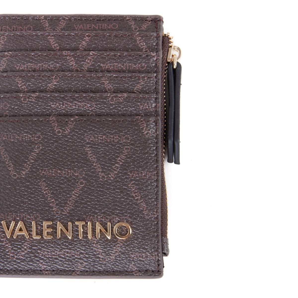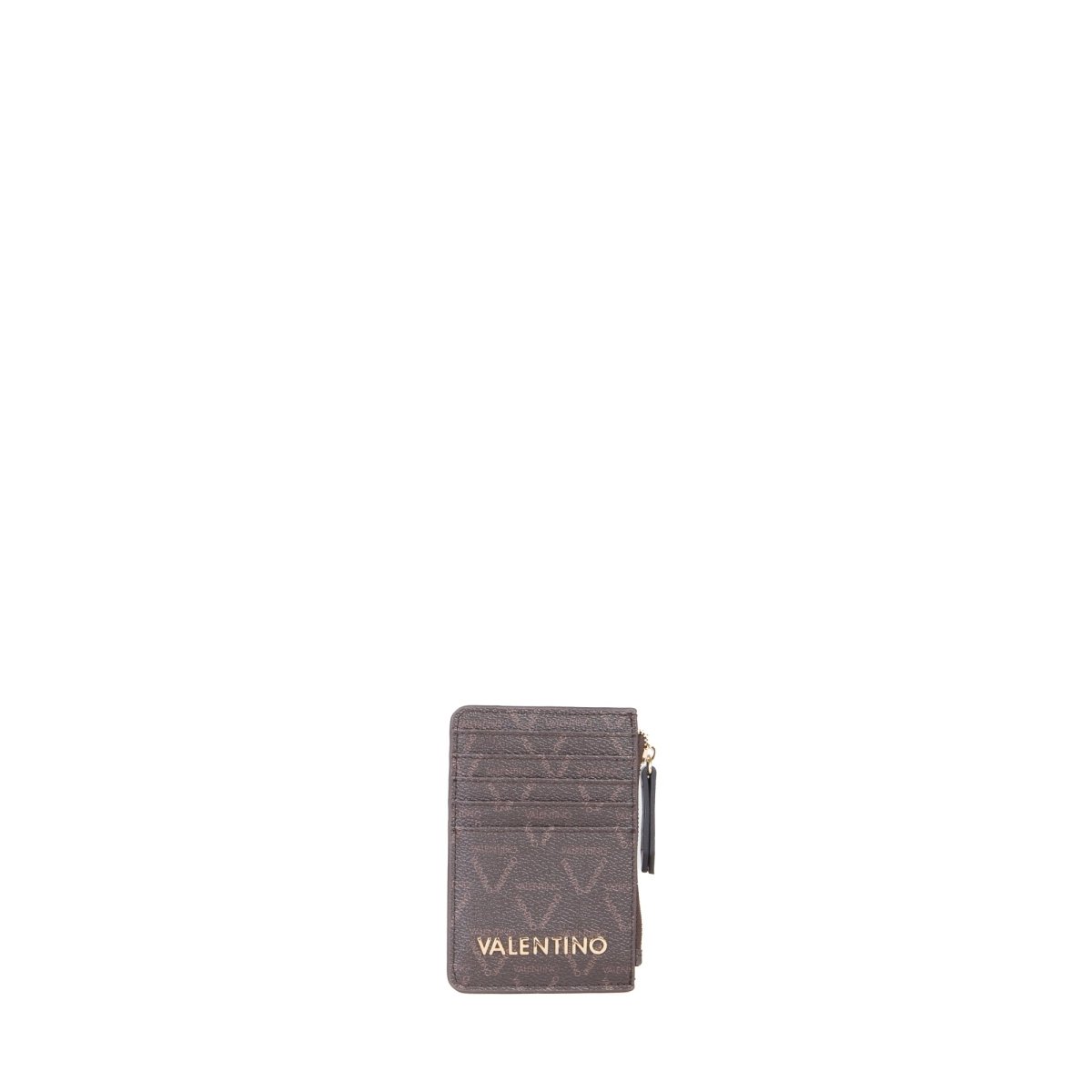 The VALENTINO Brixton credit card purse is the perfect accessory. Crafted from 100% PU, this slimline purse is both durable and stylish. With a length of 13cm, height of 8.5cm, and width of 1cm, it's the perfect size to fit all your cards and coins in without being too bulky. The sleek design is accented with the iconic VALENTINO logo in gold, adding a touch of luxury to your everyday look. Keep your cards and cash or receipts organized with 5 card slots. This slimline purse fits perfectly into any VALENTINO bag especially when you don't want to carry your coins in a separate purse. Dimensions of the product are: height 1cm, width 8.5cm, length 13cm.