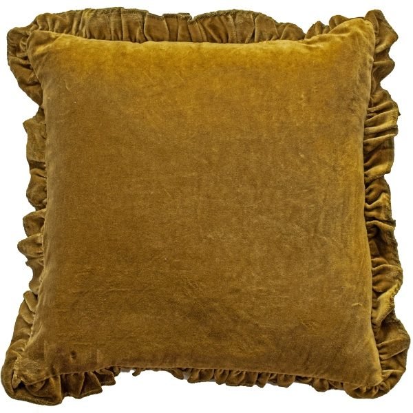 FRILL COTTON VELVET CUSHION OLIVE 45 X 45