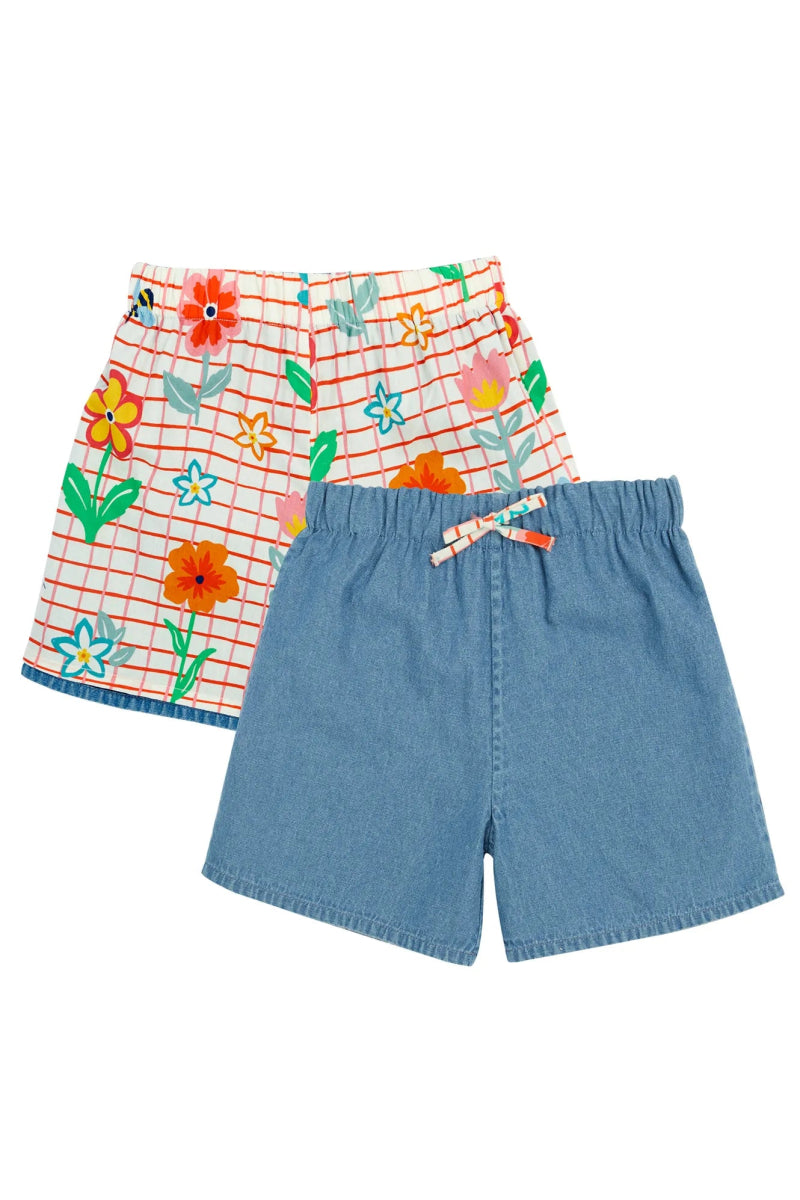 Wonderfully soft and lightweight, these Marigold Reversible Shorts are perfect for summer adventures! We've designed them with an elasticated waistband for speedy dressing, and the adjustable drawcord helps create a fab fit. Plus, they're crafted from 100% GOTS certified organic cotton, and reversible – meaning there are two summertime looks in one!