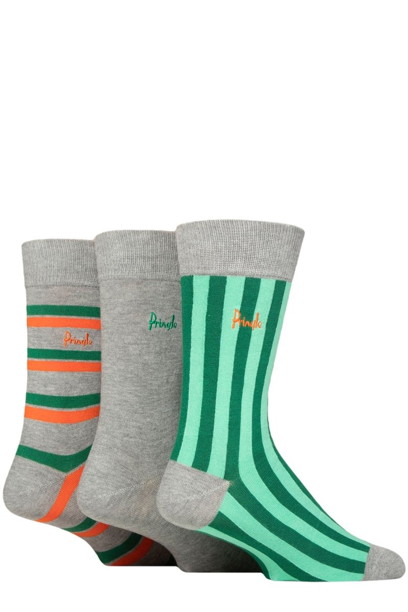 MENS 3 PAIR PRINGLE PATTERNED BAMBOO SOCKS - GREY