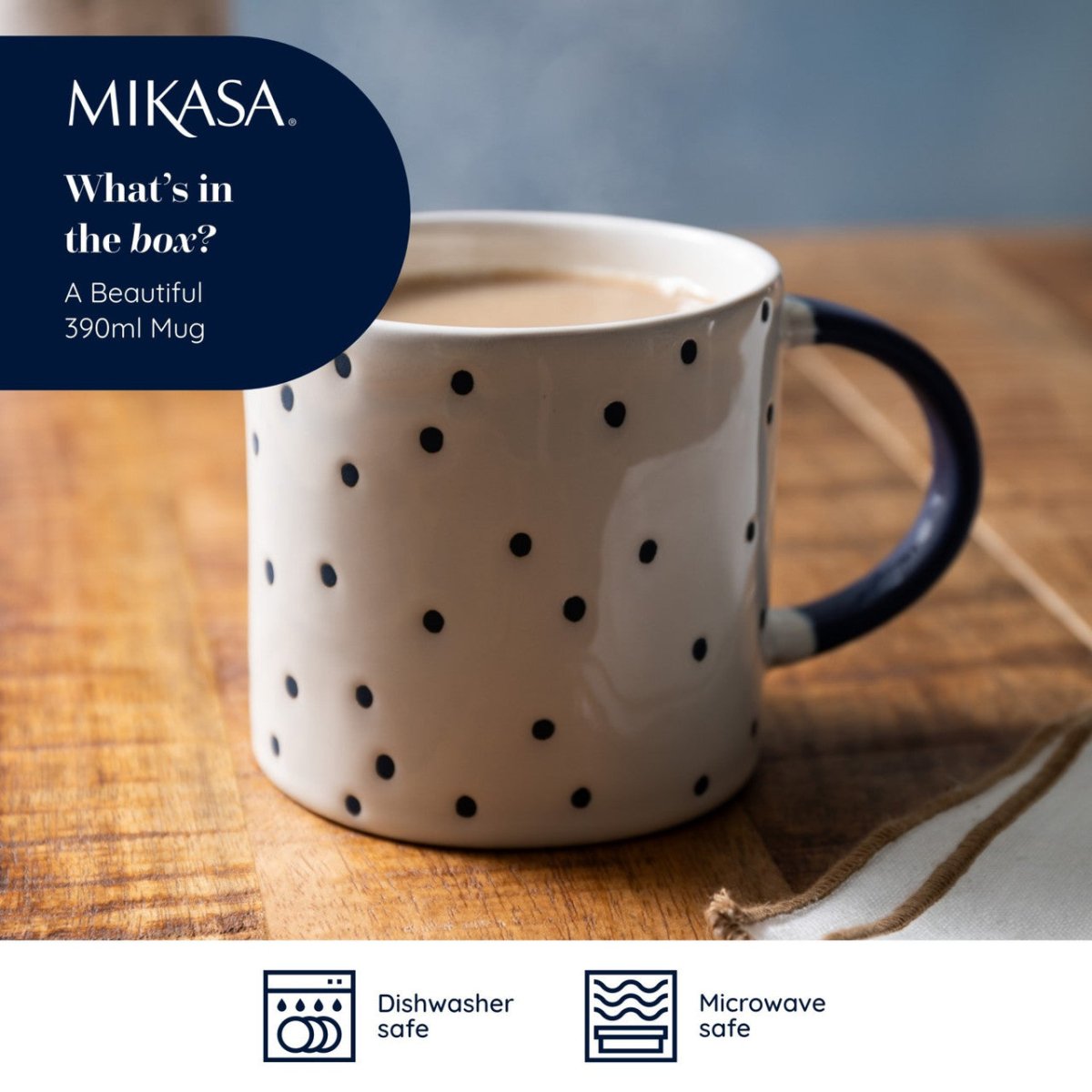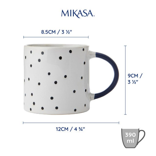 Add a touch of playful charm to your daily routine with the Mikasa Spotty Mug. Made from durable stoneware, this footed mug features a bold spotted design and a generous 390ml capacity, perfect for coffee, tea, or hot chocolate. Microwave and dishwasher safe, it offers everyday practicality with a stylish edge. Whether you're refreshing your mug set or gifting a tea lover, this elegant mug is a perfect choice for any kitchen.