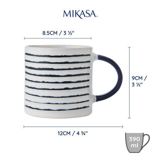 Add a touch of playful charm to your daily routine with the Mikasa Striped Mug. Made from durable stoneware, this footed mug features a bold striped design and a generous 390ml capacity, perfect for coffee, tea, or hot chocolate. Microwave and dishwasher safe, it offers everyday practicality with a stylish edge. Whether you're refreshing your mug set or gifting a tea lover, this elegant mug is a perfect choice for any kitchen.