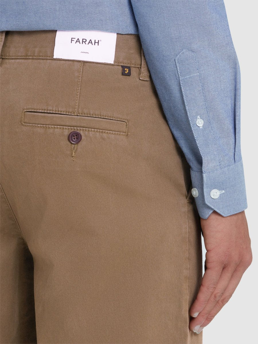 With a comfortable, regular fit the Norwood Chinos provide the most versatile option in our range. Perfect for any occasion, the cotton twill fabrication ensures comfort while maintaining durability. Complete with pockets, belt loops and a zip/button fastening, these chinos are finished with original F tab inspired branding that dates back to Farah's bottoms from the 1950's.