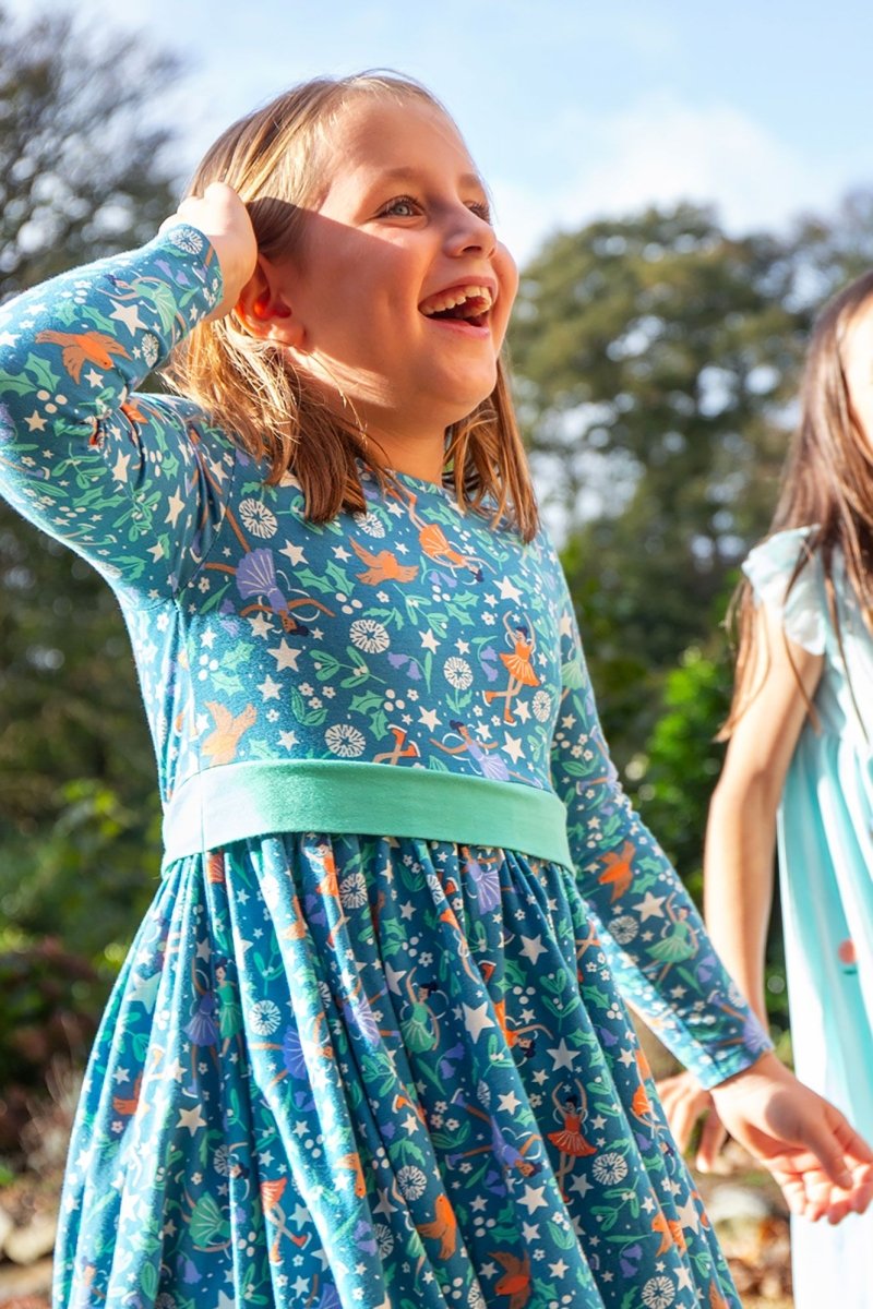 Party hats at the ready - our Party Skater Dress is ready for a boogie! The full circular skirt offers maximum twirlability for rocking the dance floor... or dancing around the Christmas tree. The contrasting-coloured sash and detachable bow give it an extra special touch for picture-perfect moments. We've crafted this kids' party dress from a beautiful blend of soft organic cotton and stretchy elastane so that it's super-durable and lasts - playtime after playtime.