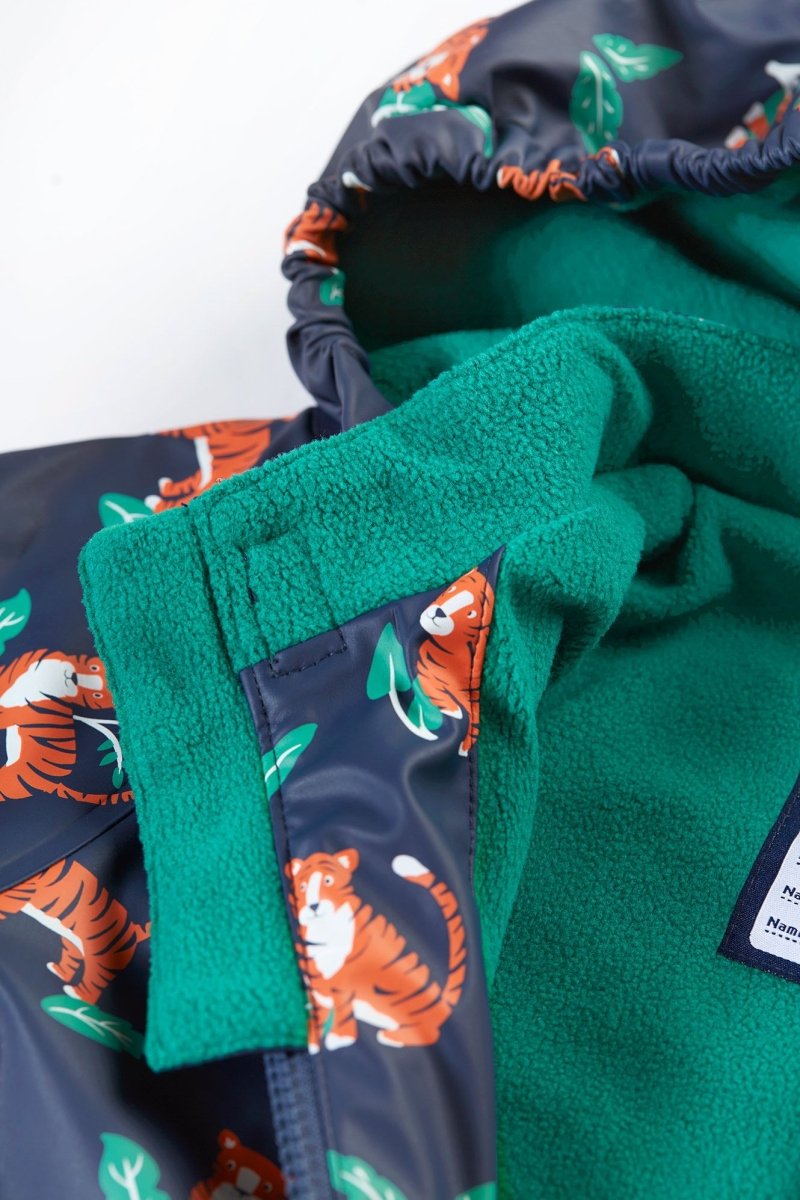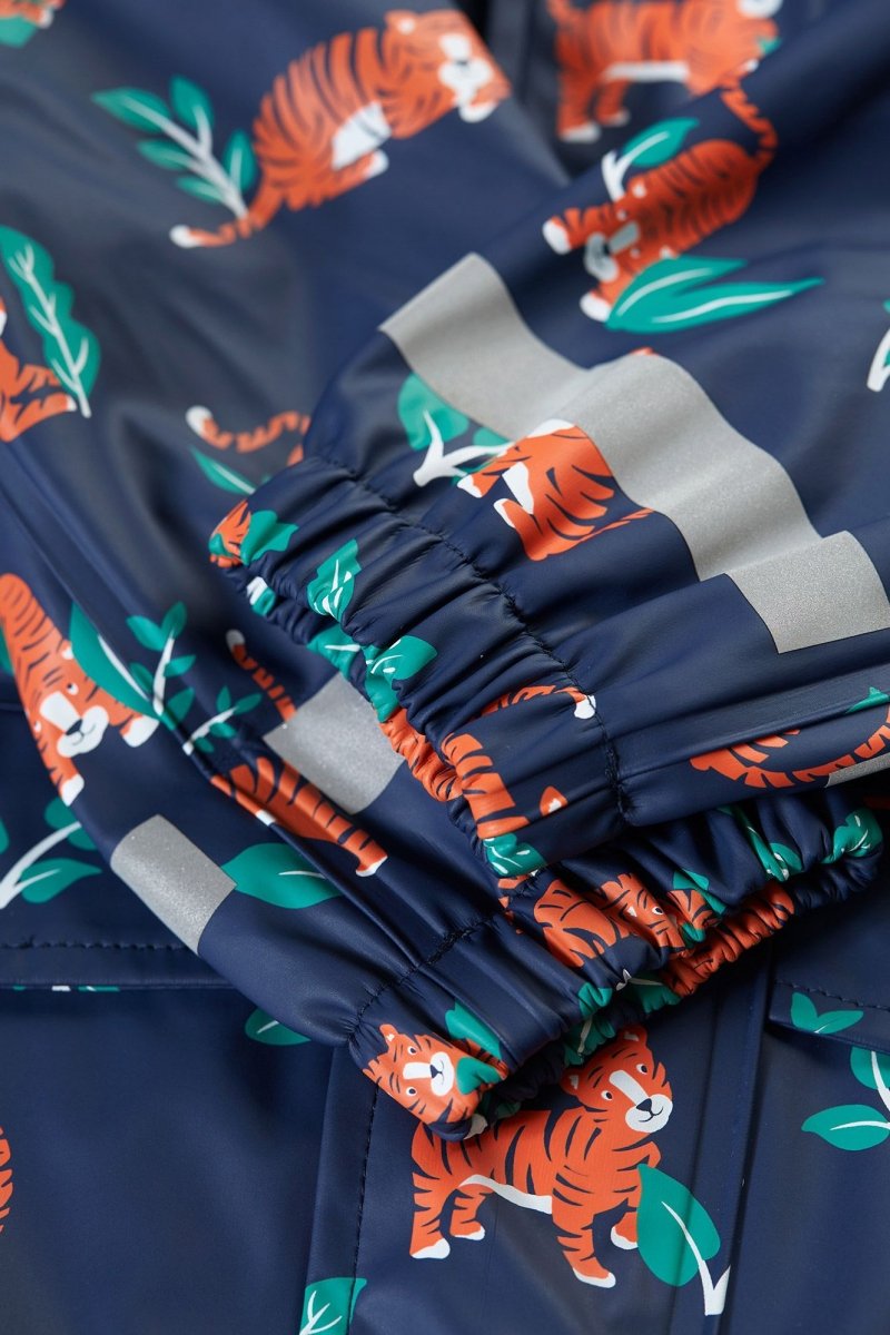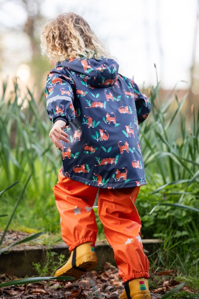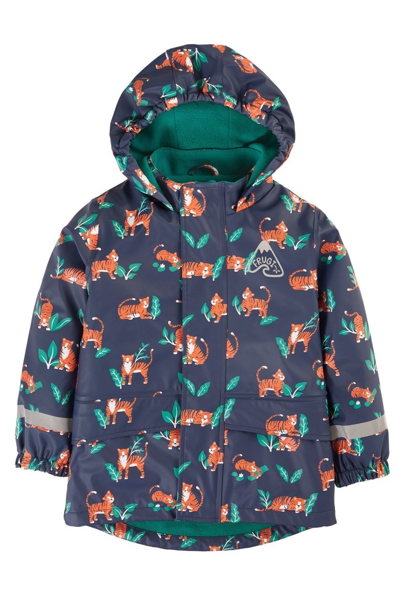 Meet our best-selling, waterproof coat from our Puddle Buster range, perfect for light showers, torrential downpours and everything else in between. We've crafted our Puddle Buster Coat from 100% post-consumer recycled plastic with fully welded seams to help keep the rain out and your little adventurer dry. The stretchy cuffs and polar fleece-lined inner will ensure that they are warm and cosy too. Featuring a bright and playful design, this kids' coat has a handy zip with hook and loop fastening on the front for easy-breezy dressing. And the 3-piece hood has an elasticated front for better visibility.