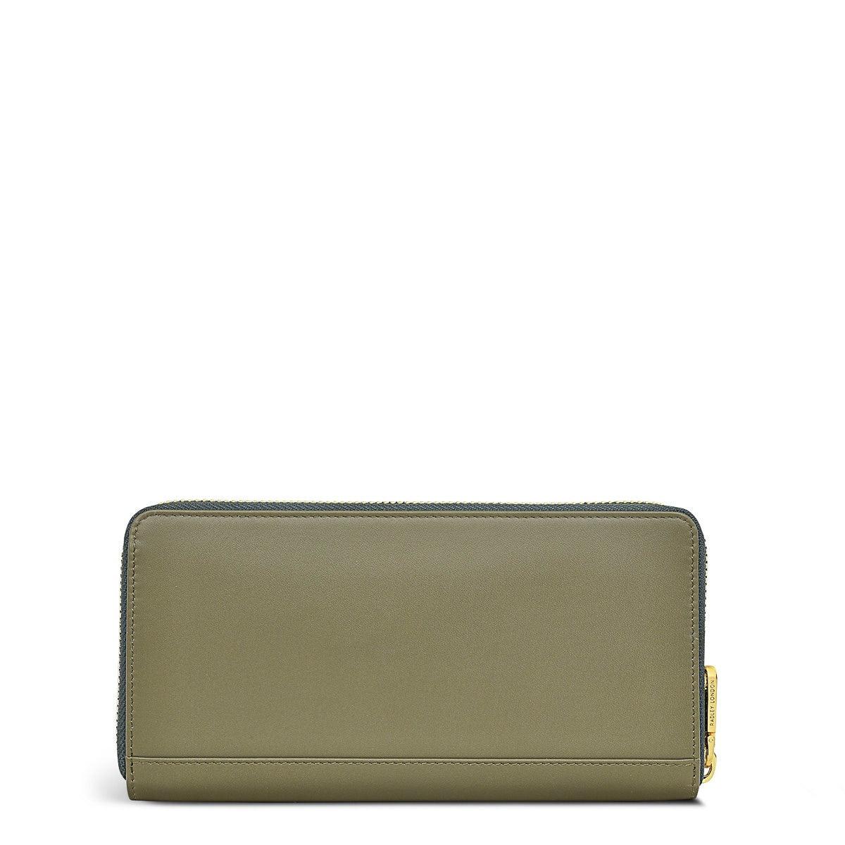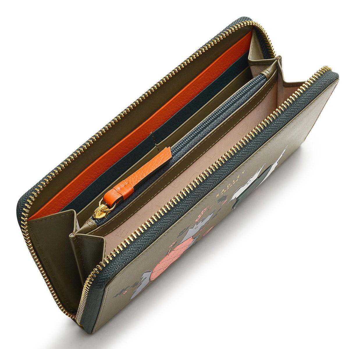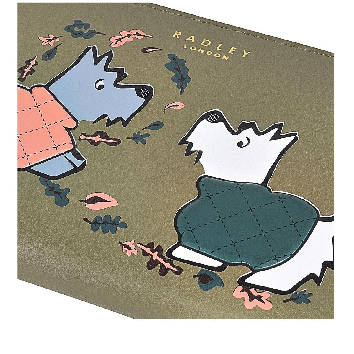 Puffer coats are a big trend this season. So big, even our Scottie is taking note. Spot him and a friend playing in the leaves, wrapped in their very own puffy jackets (crafted with padded, raised leather) on this large matinee purse. Designed with screen print leaves and contrast colour card slots inside, to ensure it has both charm and practicality. - Crafted in grained leather