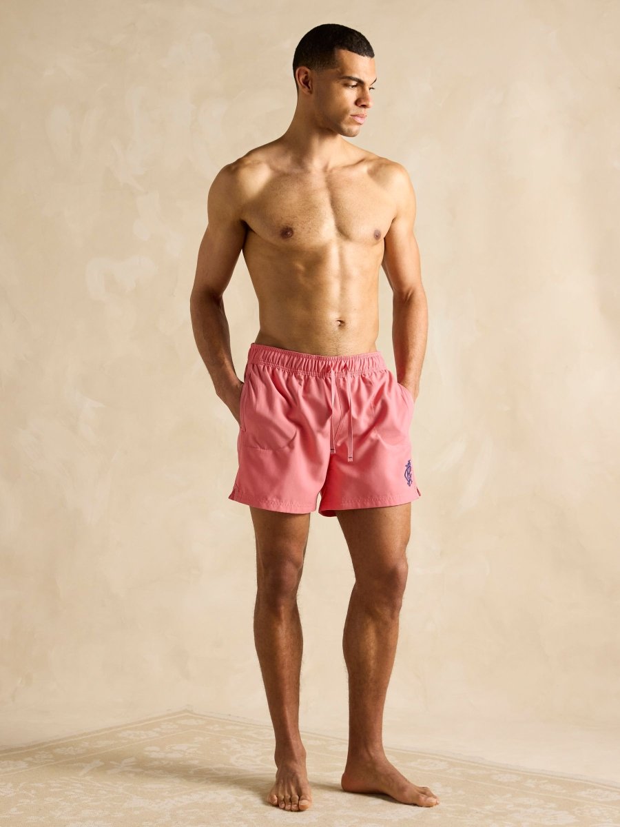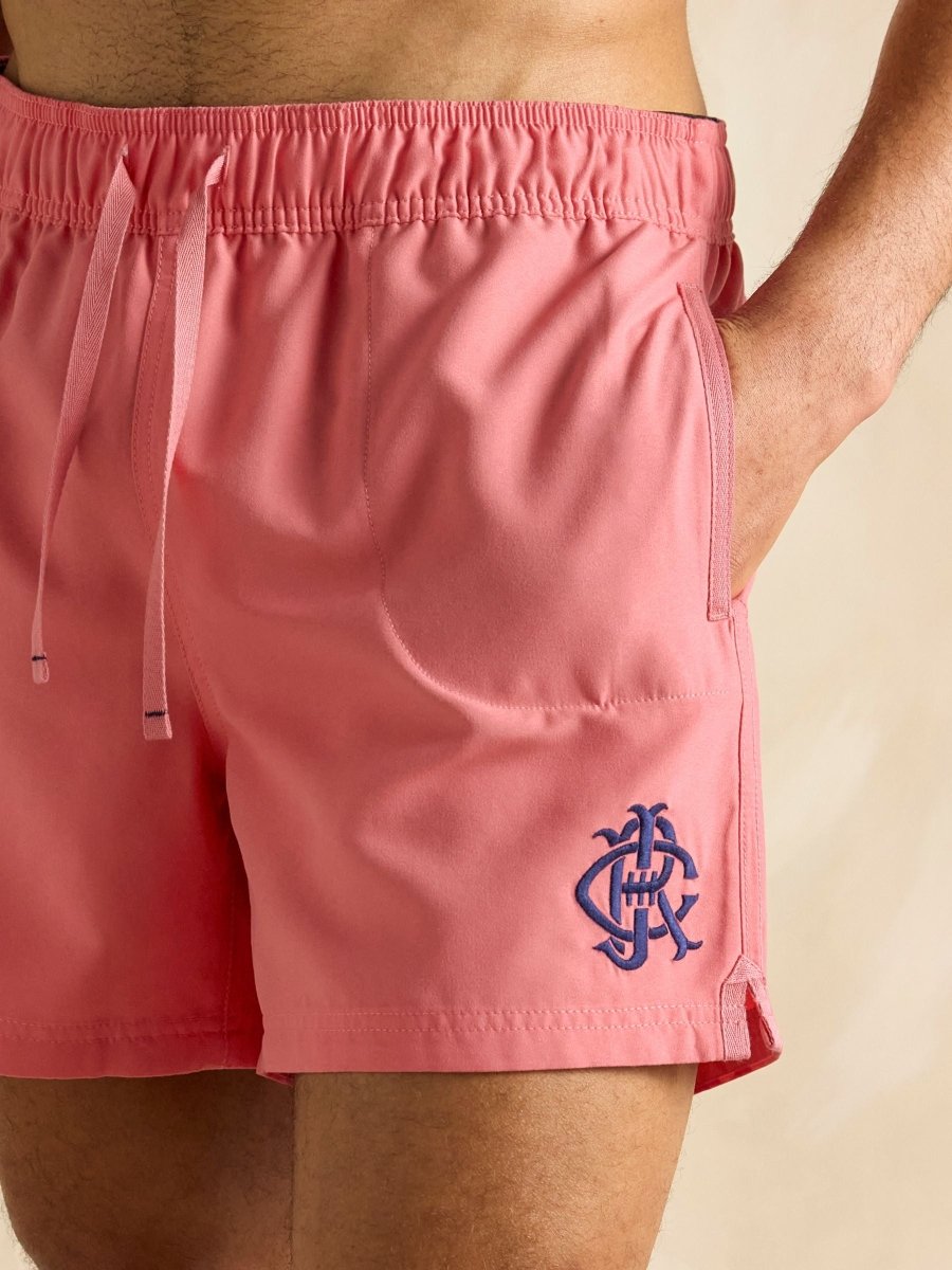 Take your swimming attire up a notch with our new rugby-inspired swim shorts. In the shape of traditional rugby shorts and complete with herringbone trims to the pockets and side vents, as well as Joules Rugby Club embroidery to the front, you'll want to wear these in more places than just at the pool and beach. Crafted from a quick drying fabric, (polyester is hydrophobic, meaning the water will not cling to it at all) with waist adjusters, two slip in side pockets, a zip back pocket and a mesh lining. When the games begin, you'll already be a winner. Swim shorts. Quick-drying fabric. Two slip in side pockets. Zip back pocket. Mesh lining. Rugby detail.
