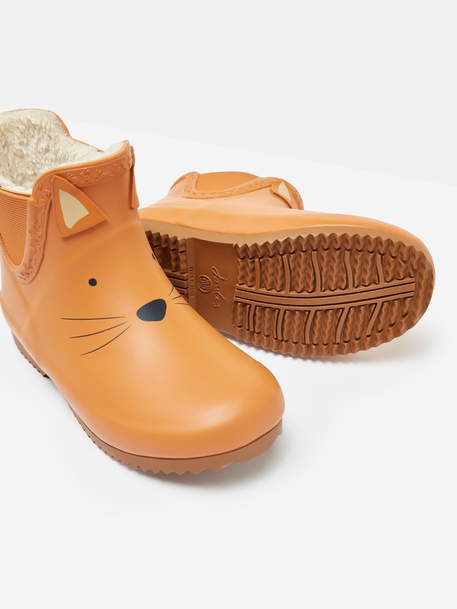If their puddle splashing escapades need more personality, let us introduce the Raindance orange wellies. A charming countryside character has made it onto these short wellies that are waterproof, warm and easy to wear.