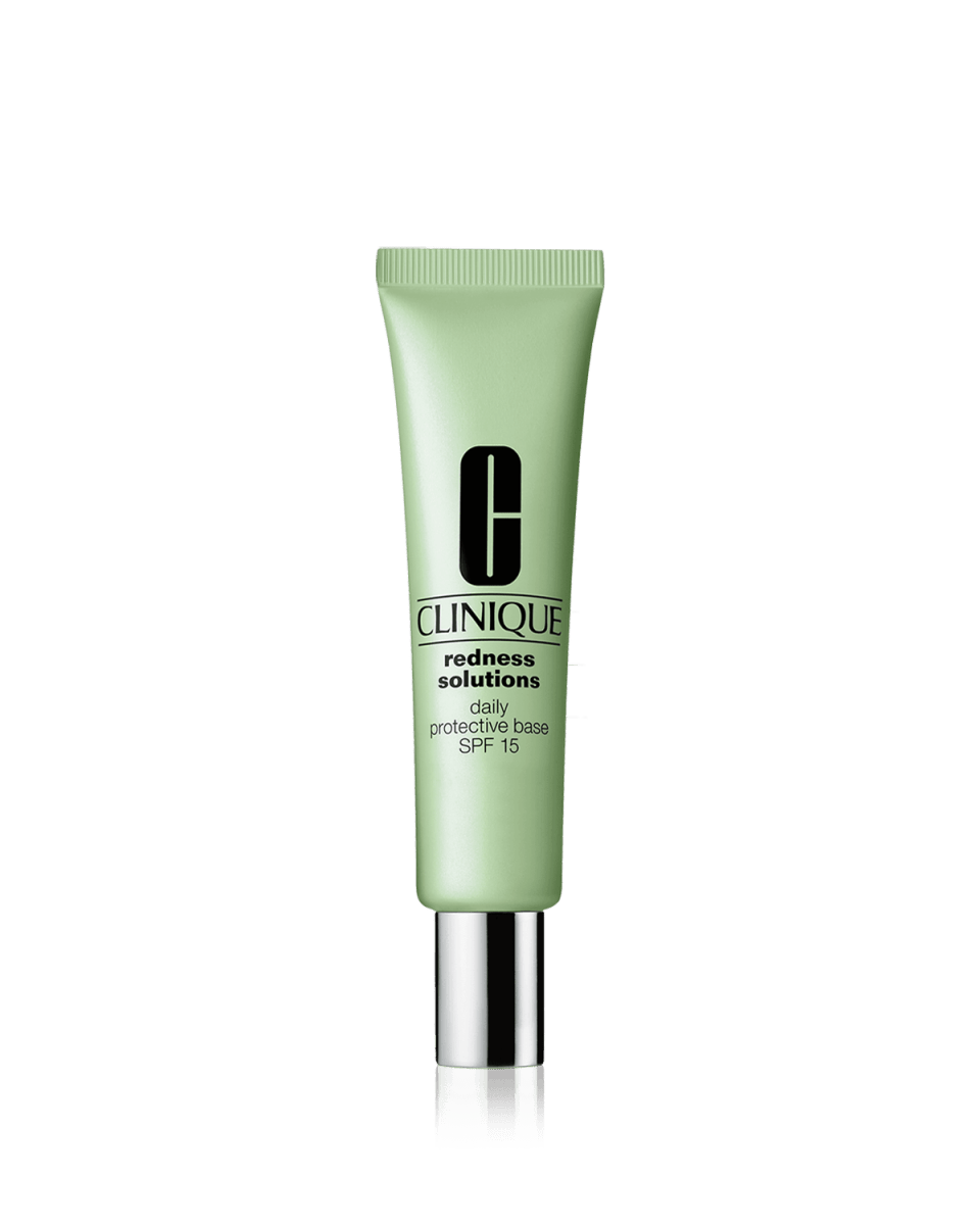 Oil-free makeup primer with a sheer green tint that helps reduce the look of redness. Use the Clinique Redness Solutions regimen to see an improvement in the look of redness: cleanse with Soothing Cleanser, comfort with Daily Relief Cream, protect with Daily Protective Base. A consistent, non-irritating routine helps get the look of redness under control.