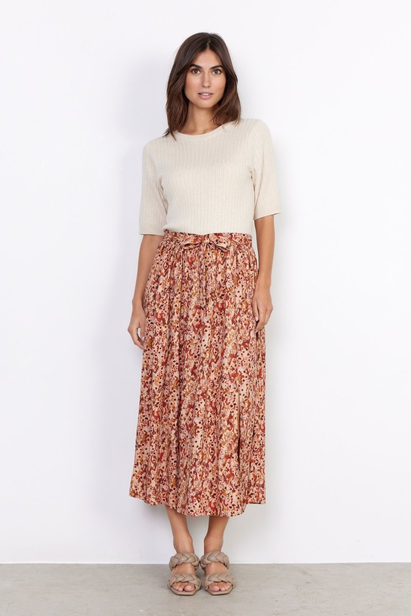 SC-Minea 4 is a feminine skirt made from 100% viscose. This lovely midi skirt has a belted waist, pleats and a colourful print. Style this vibrant skirt with a basic t-shirt and some sneakers for a nice look.