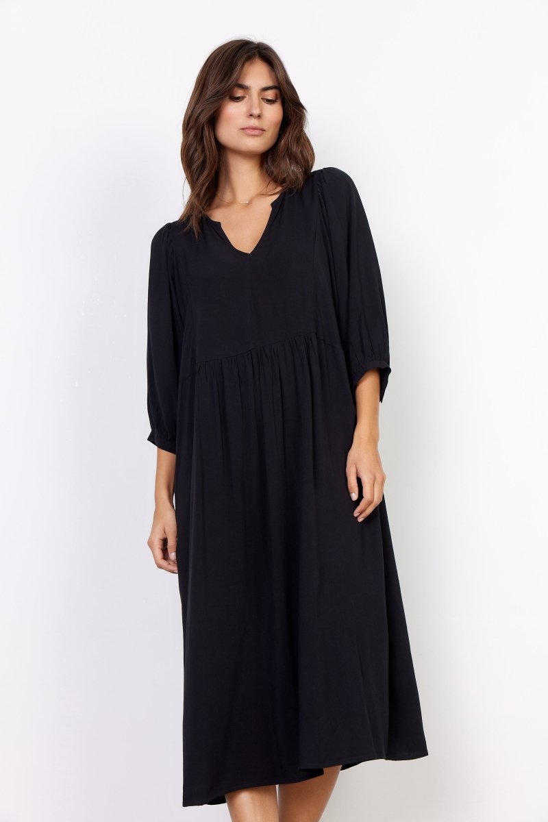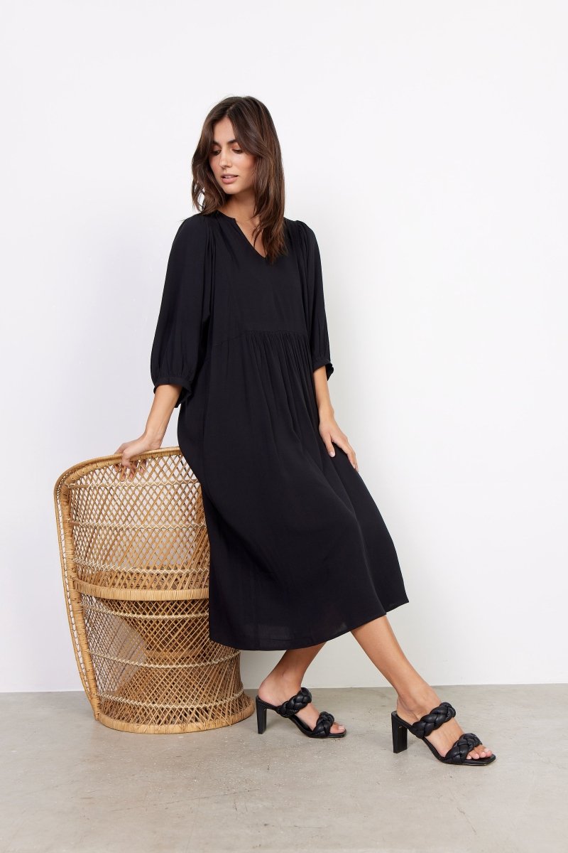 Sc-Radia 172 is a classic dress made from 100% viscoe. This lovely dress has a split neckline, 3/4 balloon sleeves and lay details. Style this lovely dress with a knitted waistcoat and some jeans for a nice layered look.