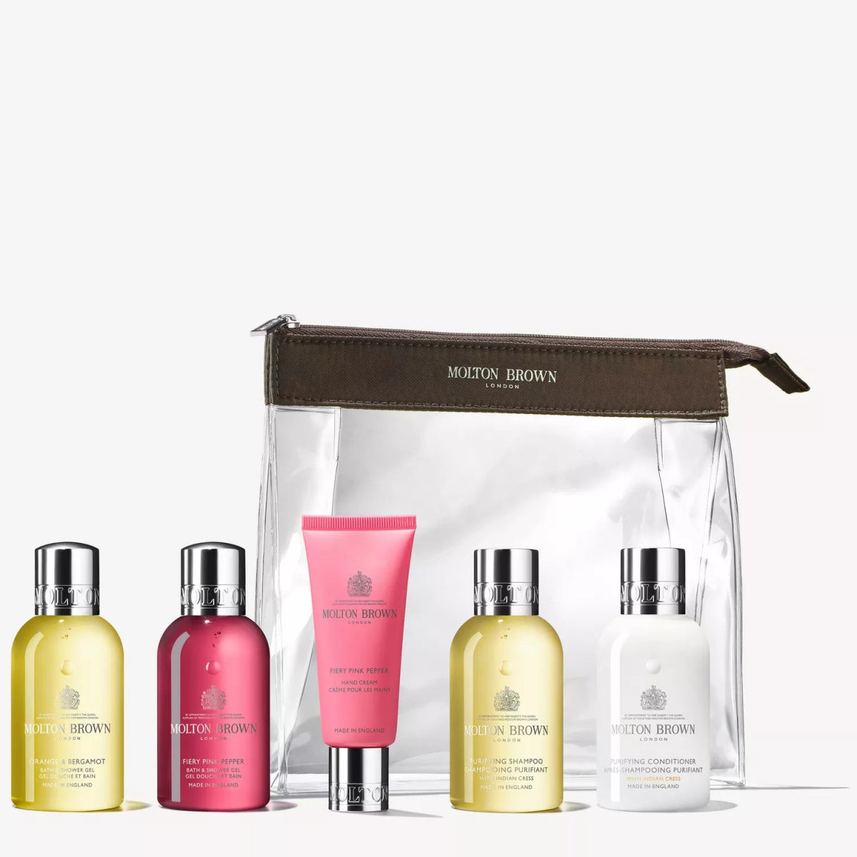 Your new favourite travel companion: our five-piece portable set has been carefully curated with vibrant Bath, Hand and Hair Care miniatures for a deeply cleansing, hydrating and beautifully fragranced experience.
