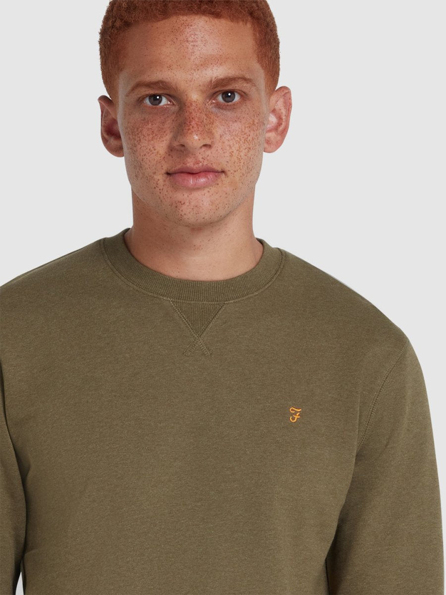 Expertly crafted from organic cotton, the Tim Sweatshirt features a premium loopback jersey fabrication for ultimate comfort. The ribbed collar with chain-stitched rib reinforcement adds durability, while the ribbed cuffs and hem provide a snug fit. Finished with an embroidered Farah logo, this sweatshirt is a must-have for any wardrobe.